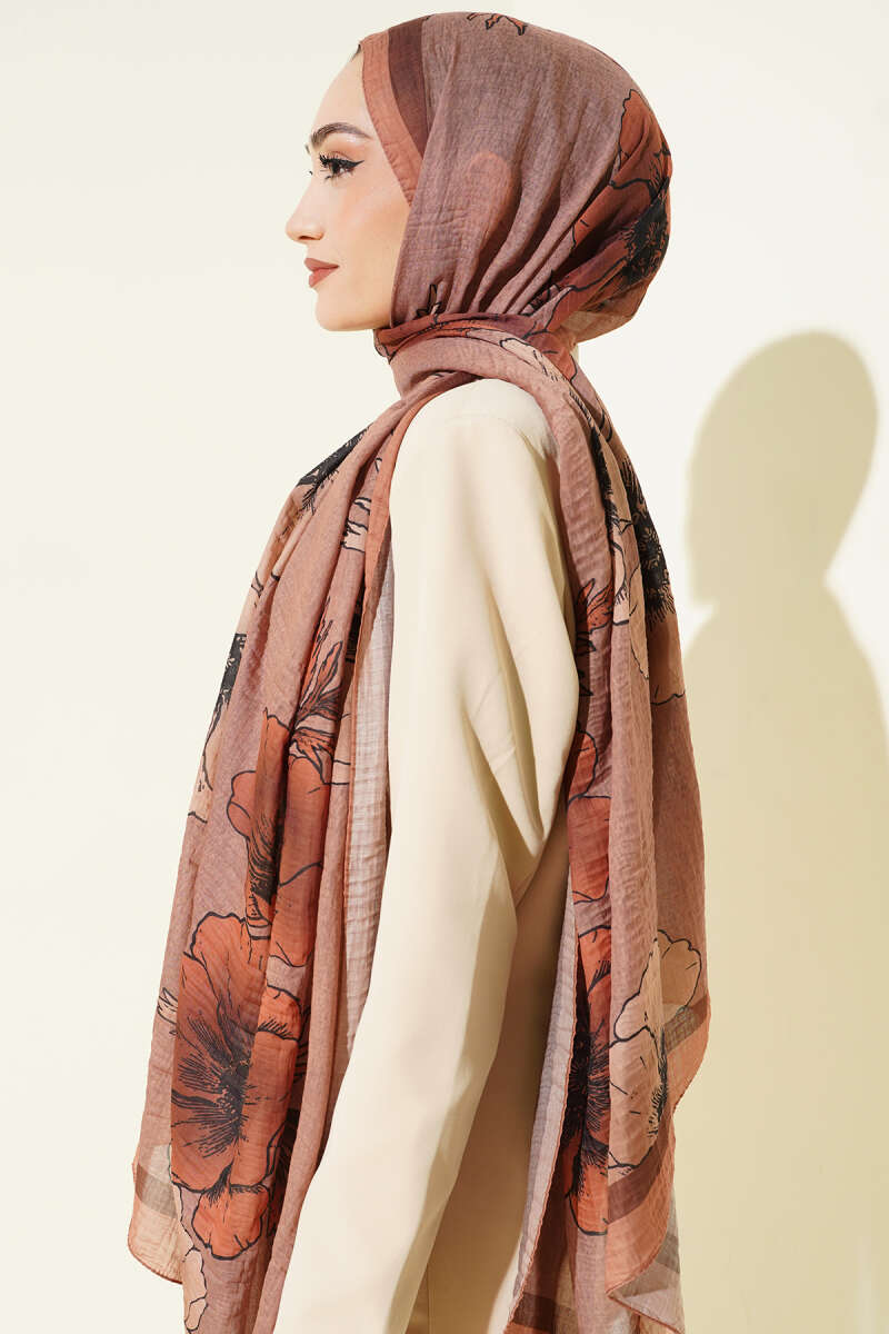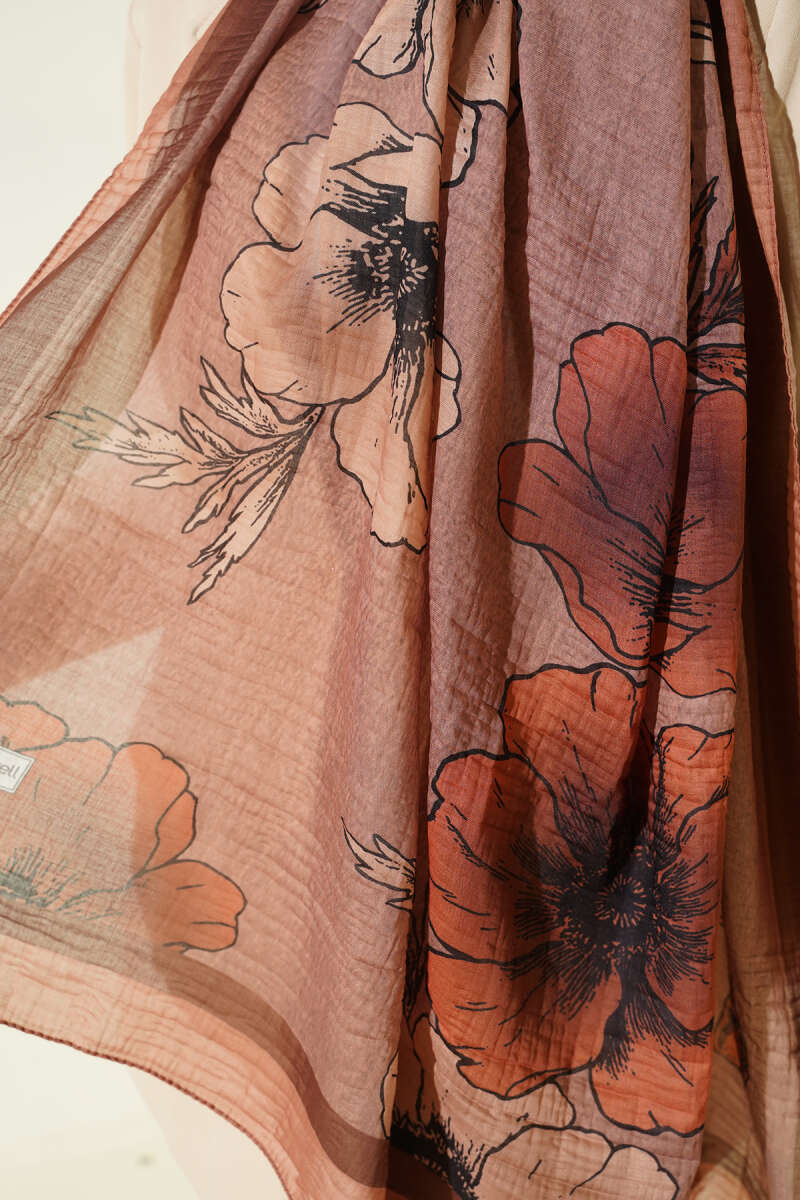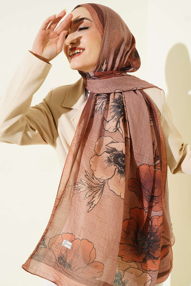 Çiçek Desenli Müslin Şal Latte