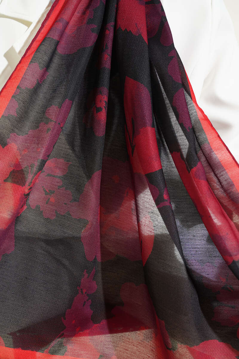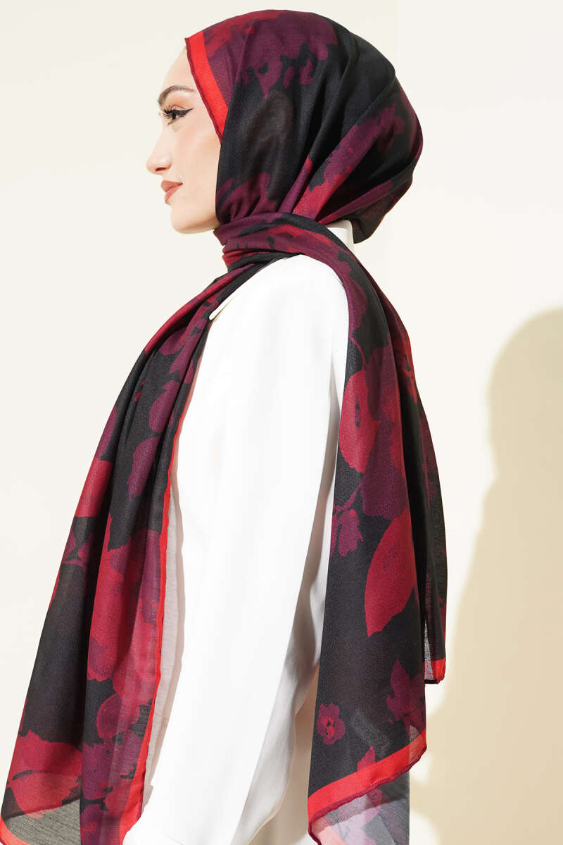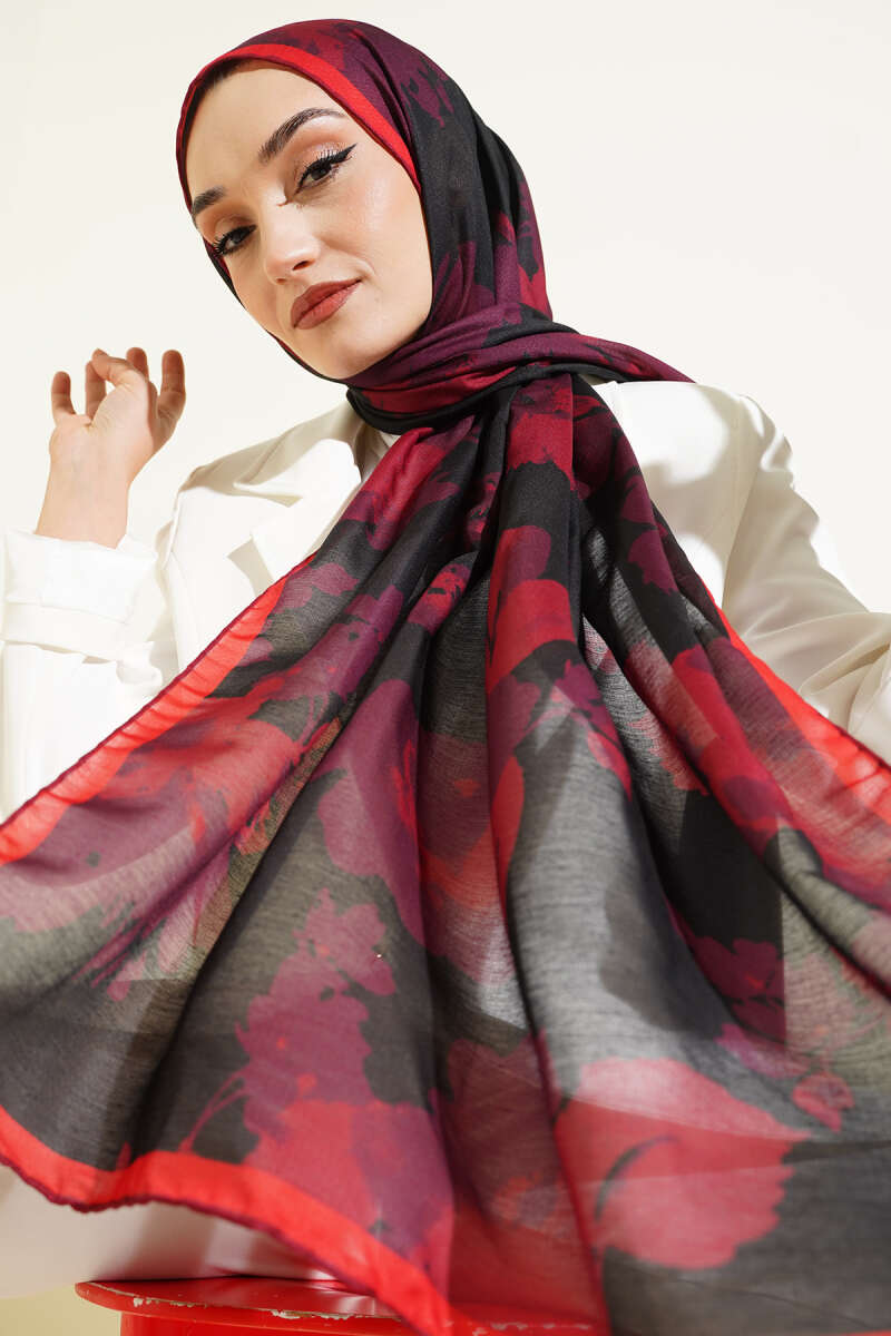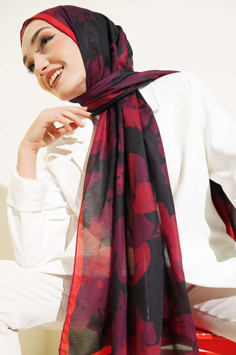 Şerit Geçişli Desenli Bambu Eşarp Bordo