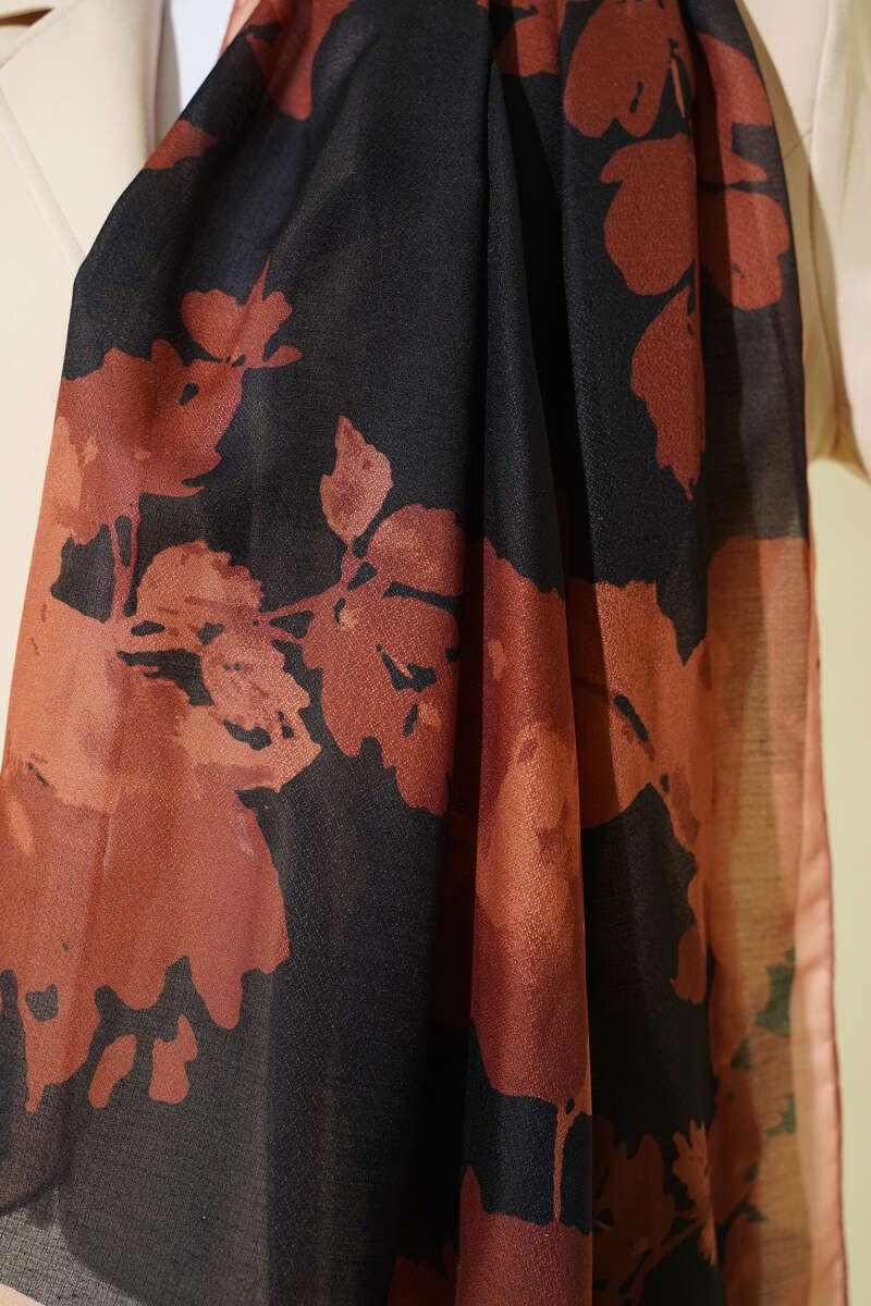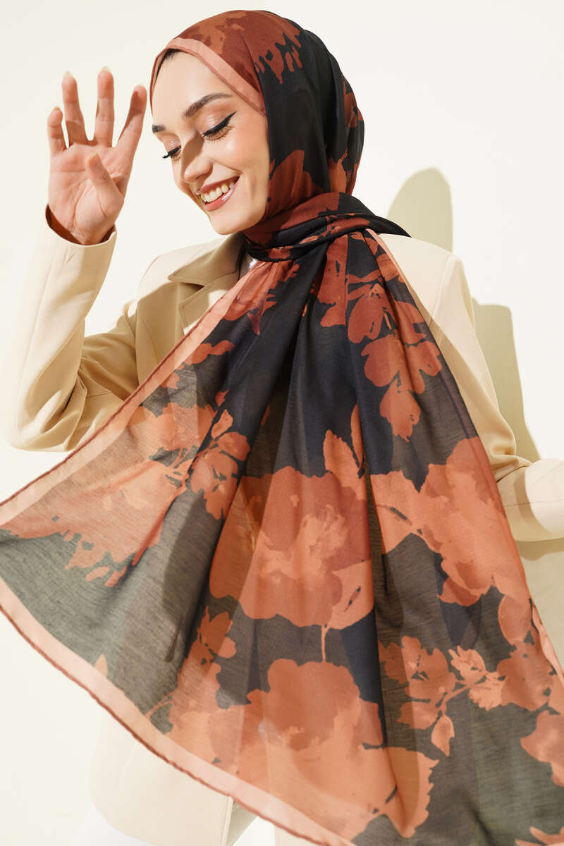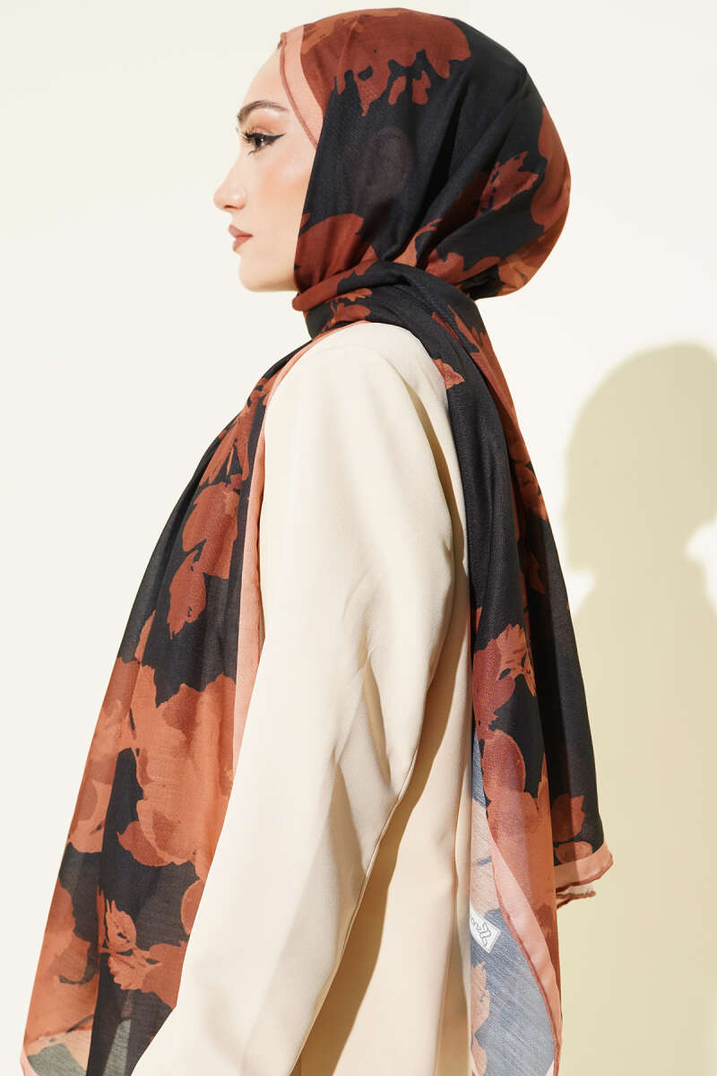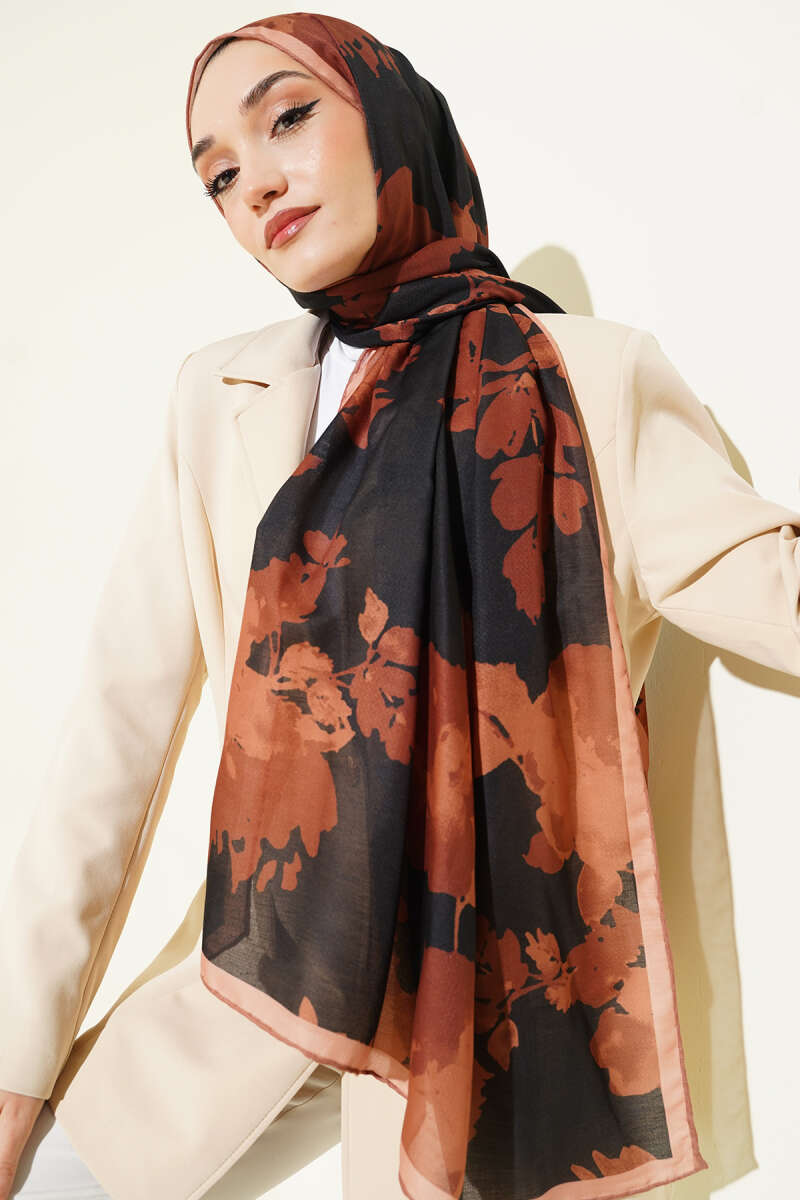 Retro Desenli Bambu Kraş Şal Acı Kahve