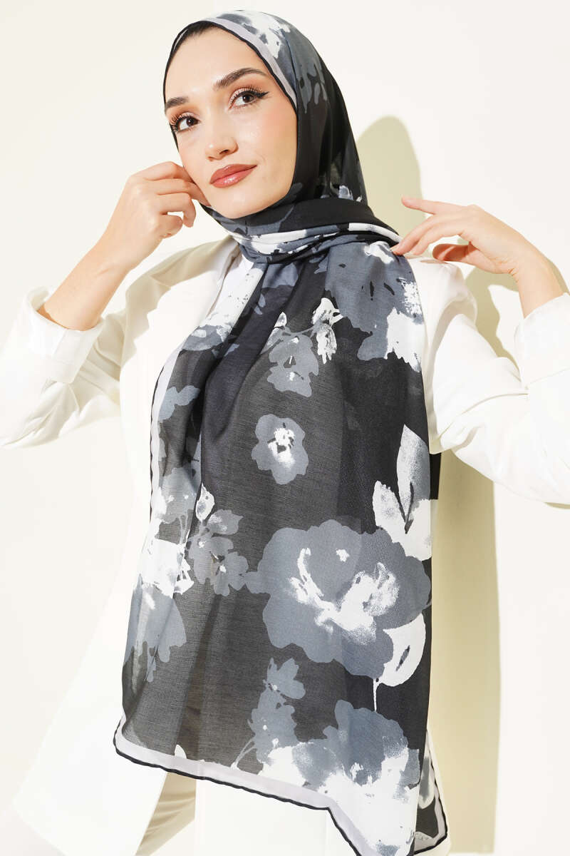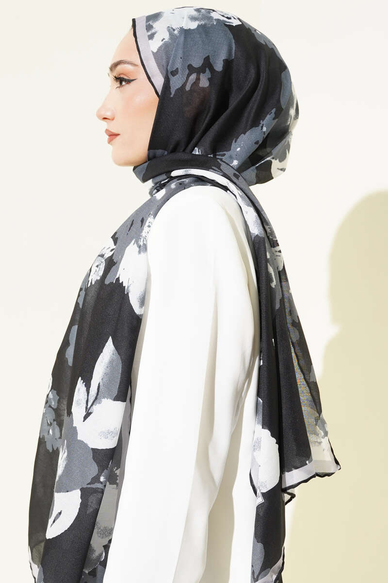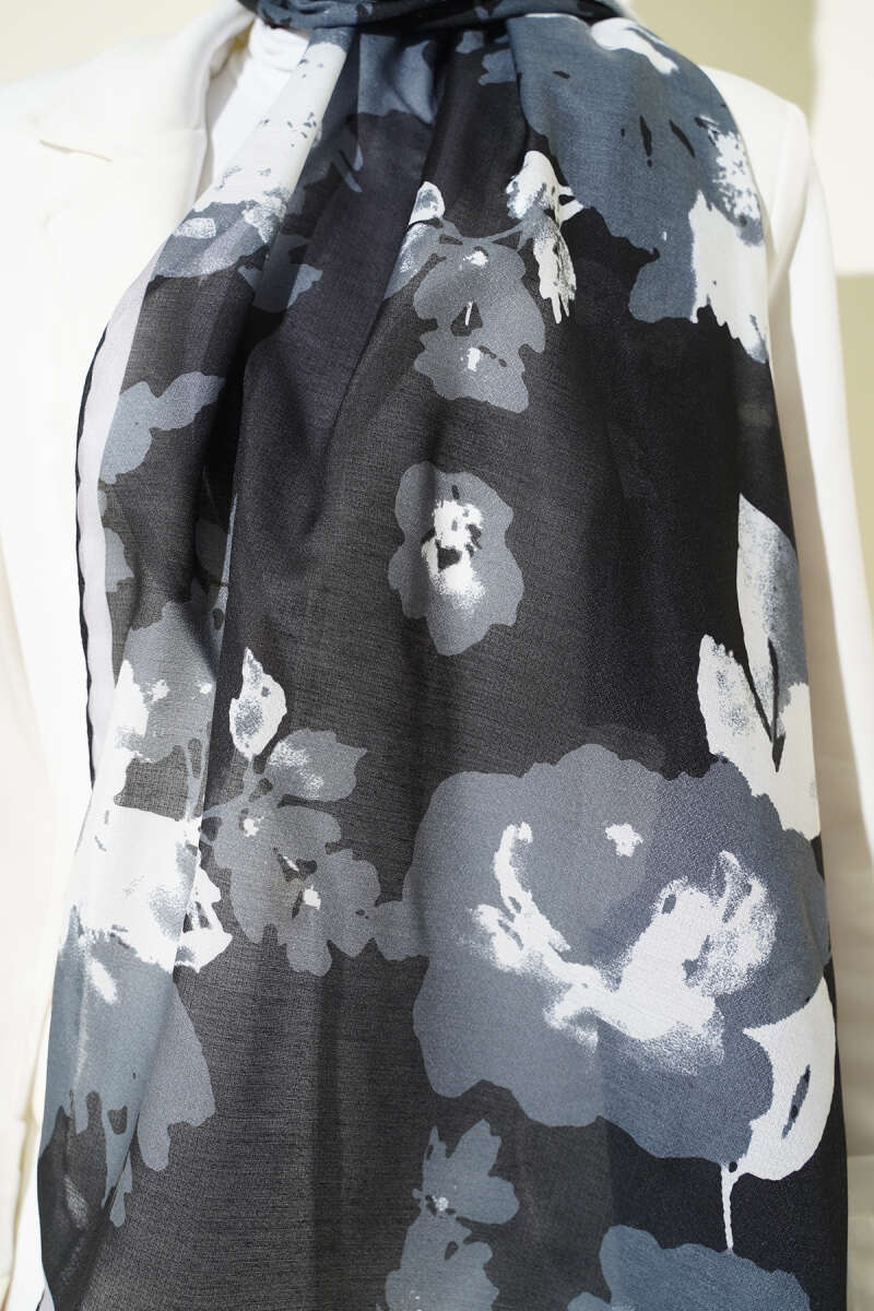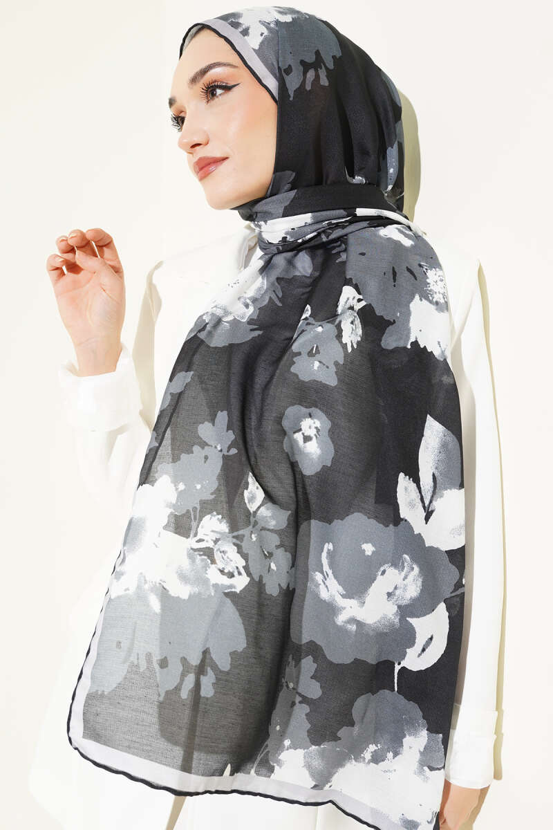 Şerit Geçişli Desenli Bambu Eşarp Siyah
