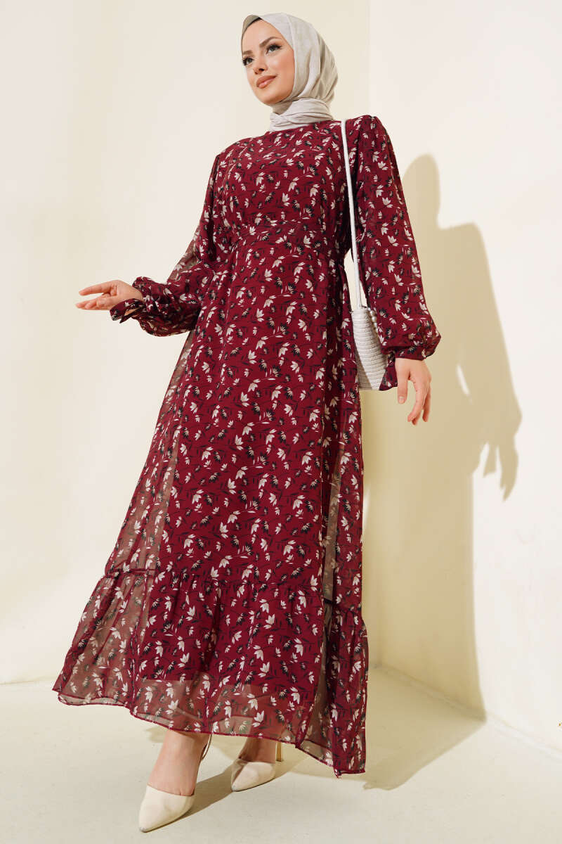 Yeni sezon elbisemiz sizlerle beraber. Elbisemiz çiçek desenleriyle hareketlilik kazanmıştır. Kol bilekleri ip bağlama detaylıdır. Elbisemiz astarlıdır. Oval yakadır. Enseden düğmelidir. Elbisemizin kendi kumaşından kuşağı vardır. Kloş modeldir. Yaz ve bahar aylarının favori parçası olacaktır.