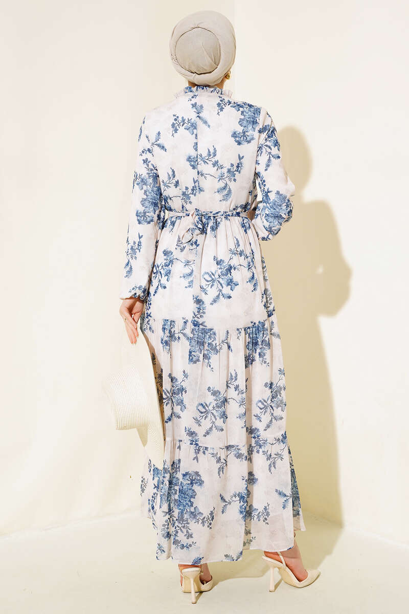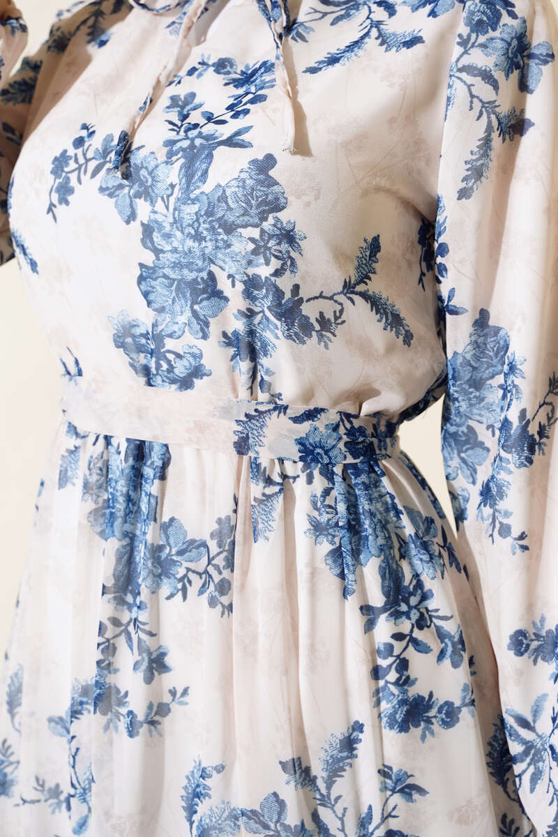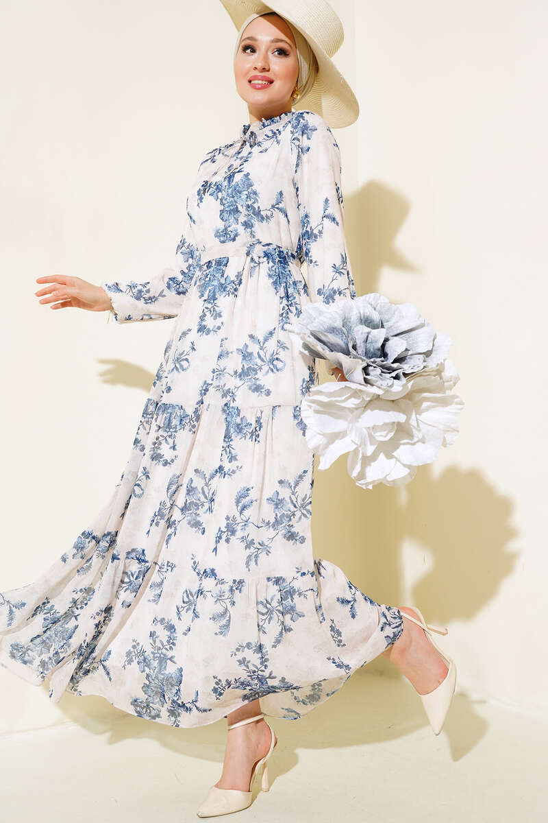 Yeni sezon şifon elbise modelimiz sizlerle beraber. Elbisemiz çiçek desenleriyle şıklık kazanmııştır. Yaksı fırfırlı olup, ip bağlama detaylıdır. Kol bilekleri lastiklidir. Elbisemizin iki adet kemer köprüsü olup, kendi kumaşından kuşağı vardır. Kat modeldir. Astarlıdır. Renk seçenekleri vardır.