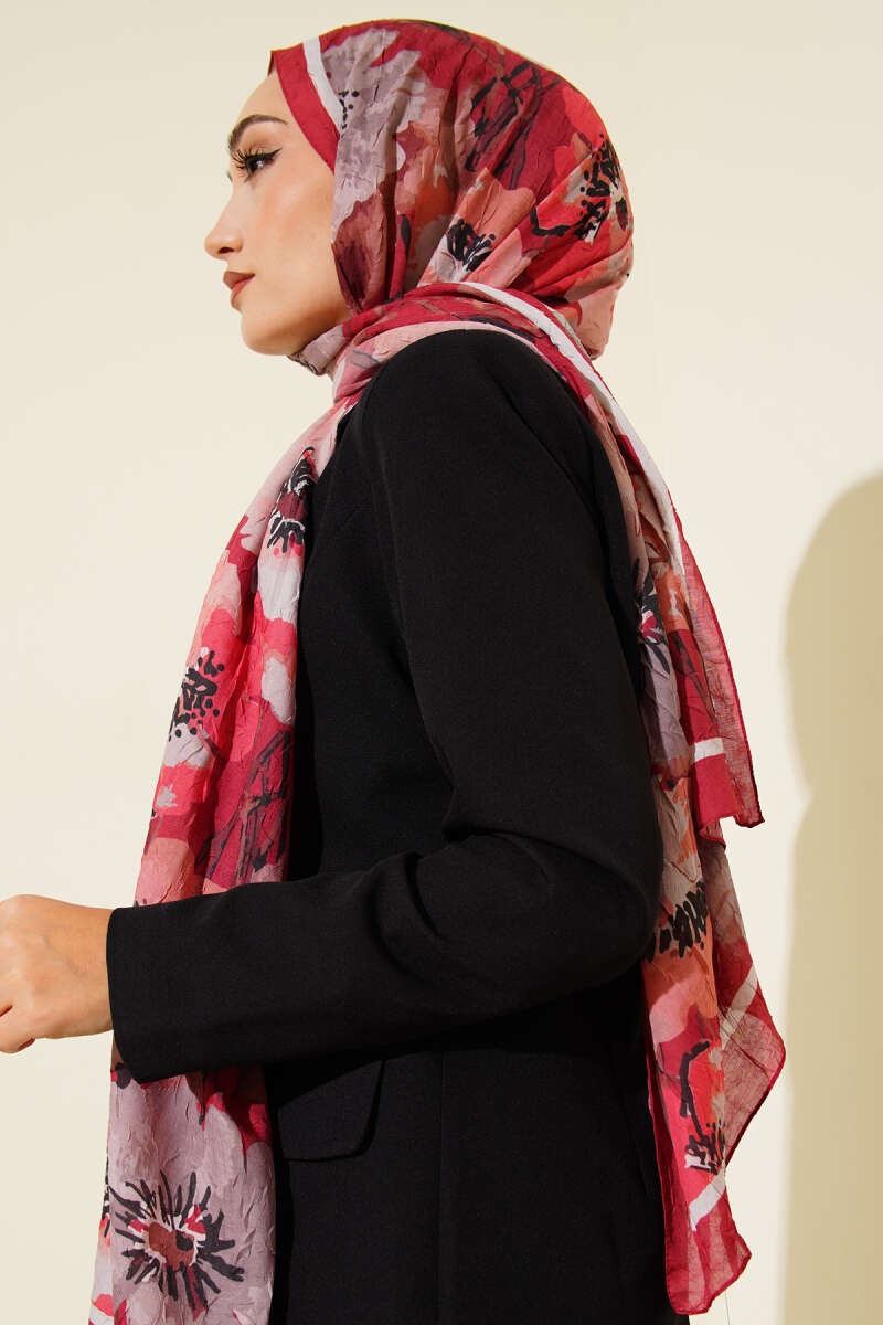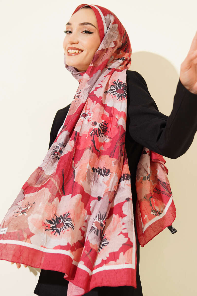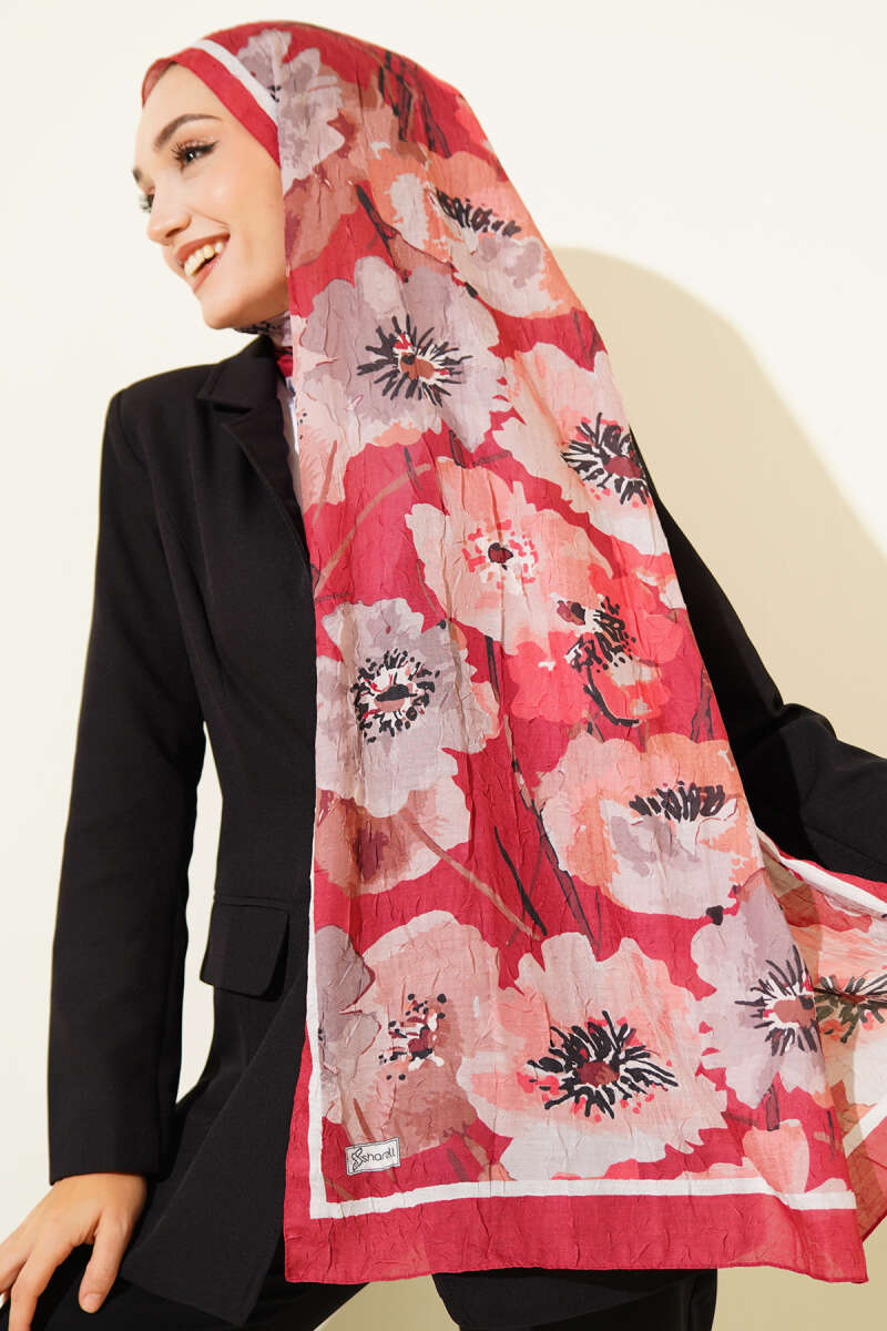 Çiçek Desenli Soft Bambu Kraş Şal Bordo