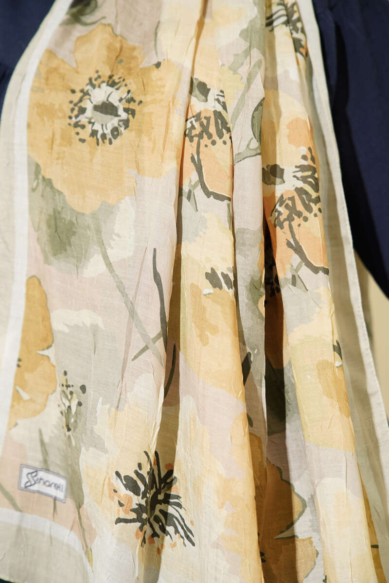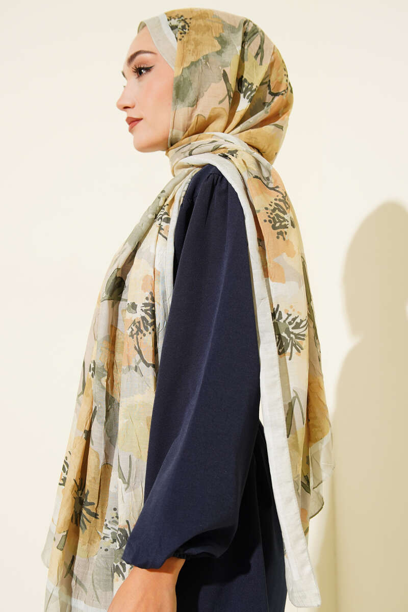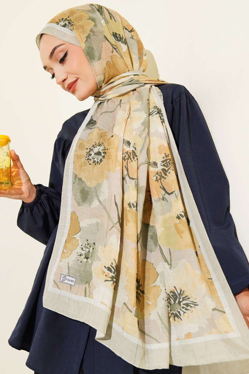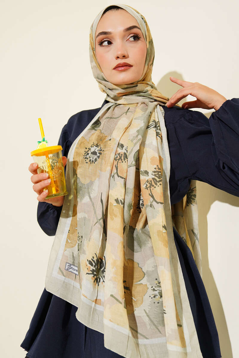 Çiçek Desenli Soft Bambu Kraş Şal Vizon
