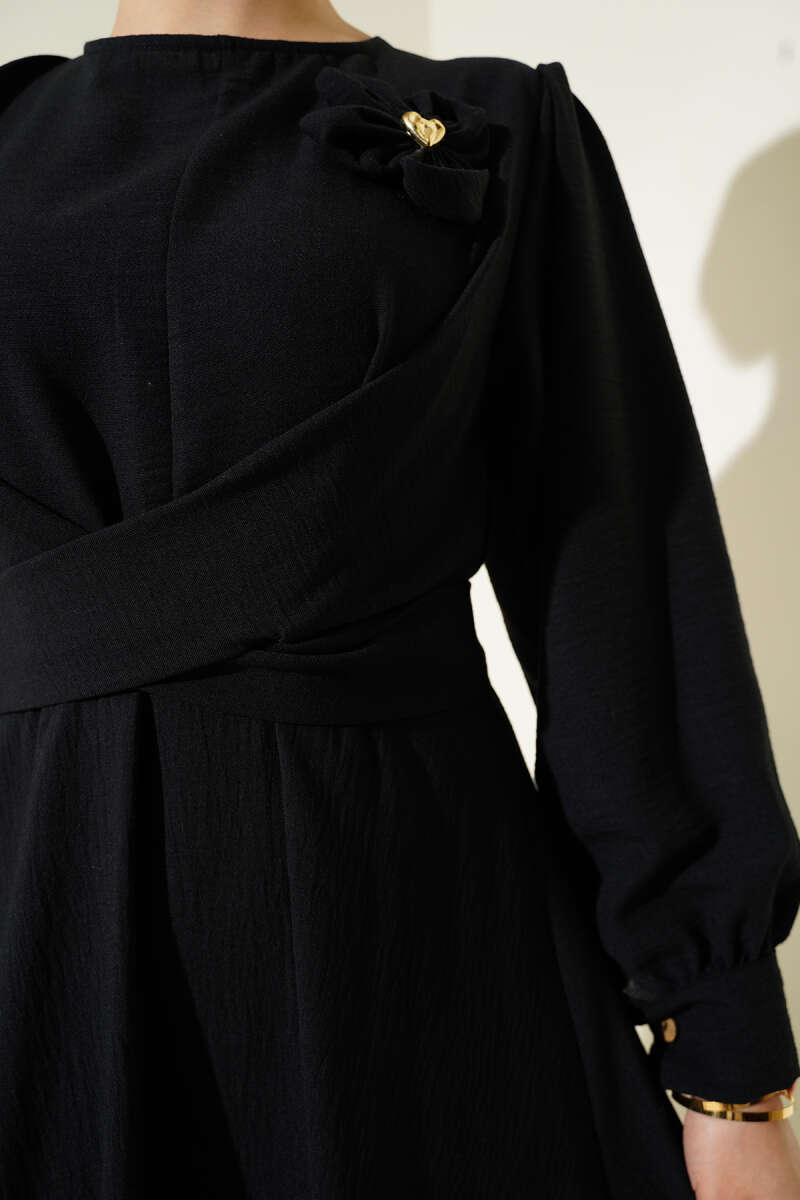 İp Kuşaklı Ajurlu Triko Elbise Siyah
