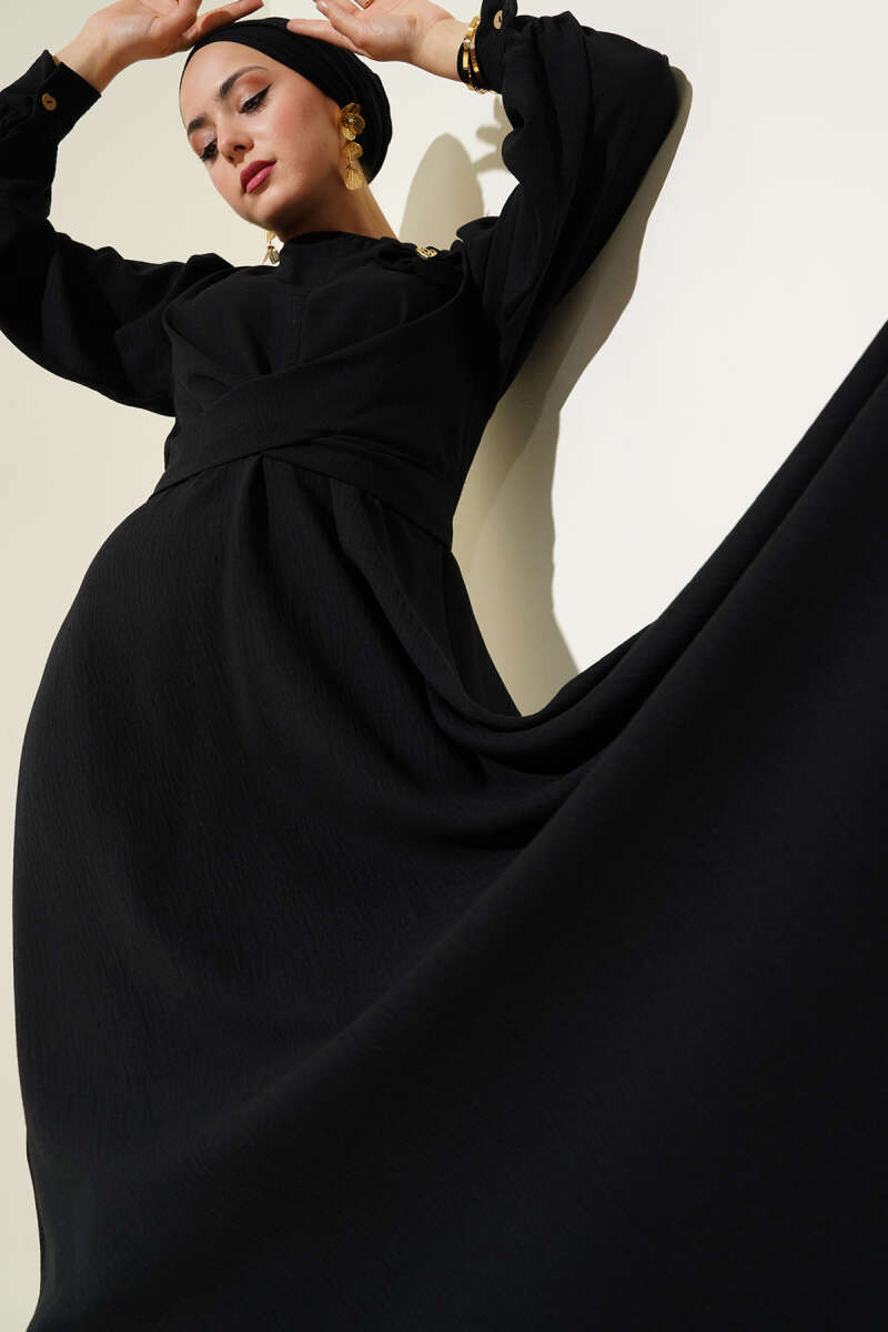 Omuz Pelerin Detaylı Abiye Elbise Siyah