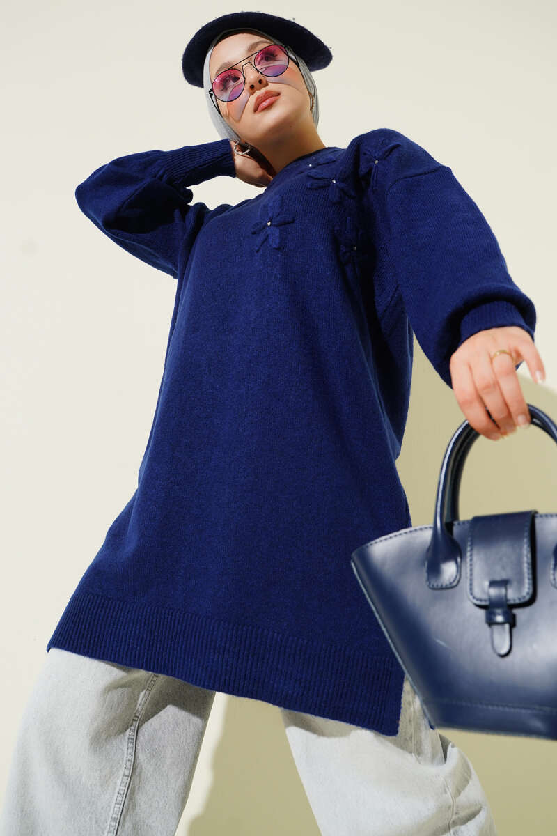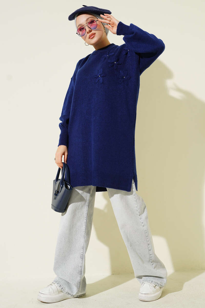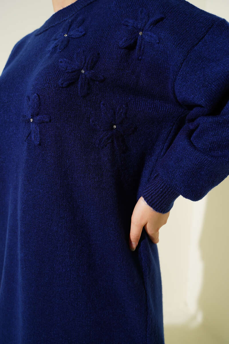 Çiçek Detaylı Yumoş Triko Tunik Nefti