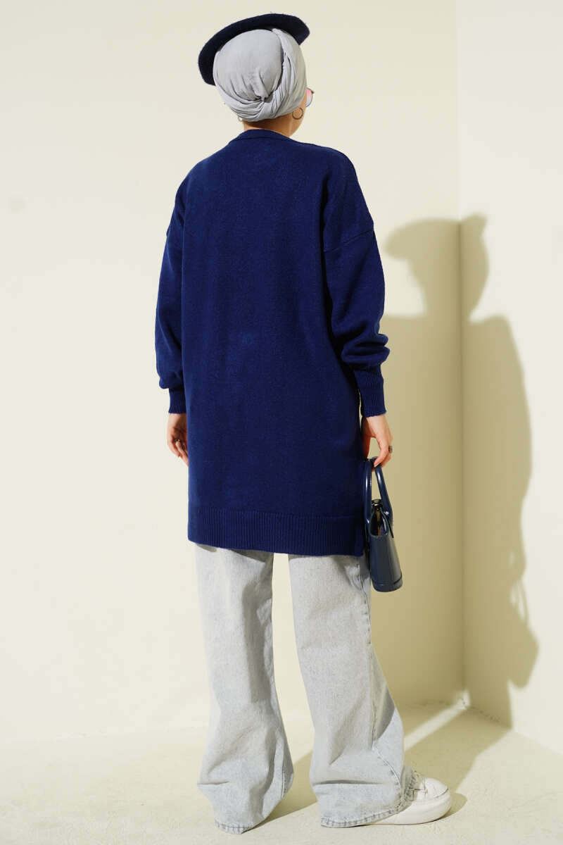 Kiraz Salkımlı Kabartma Yumoş Triko Tunik Lacivert