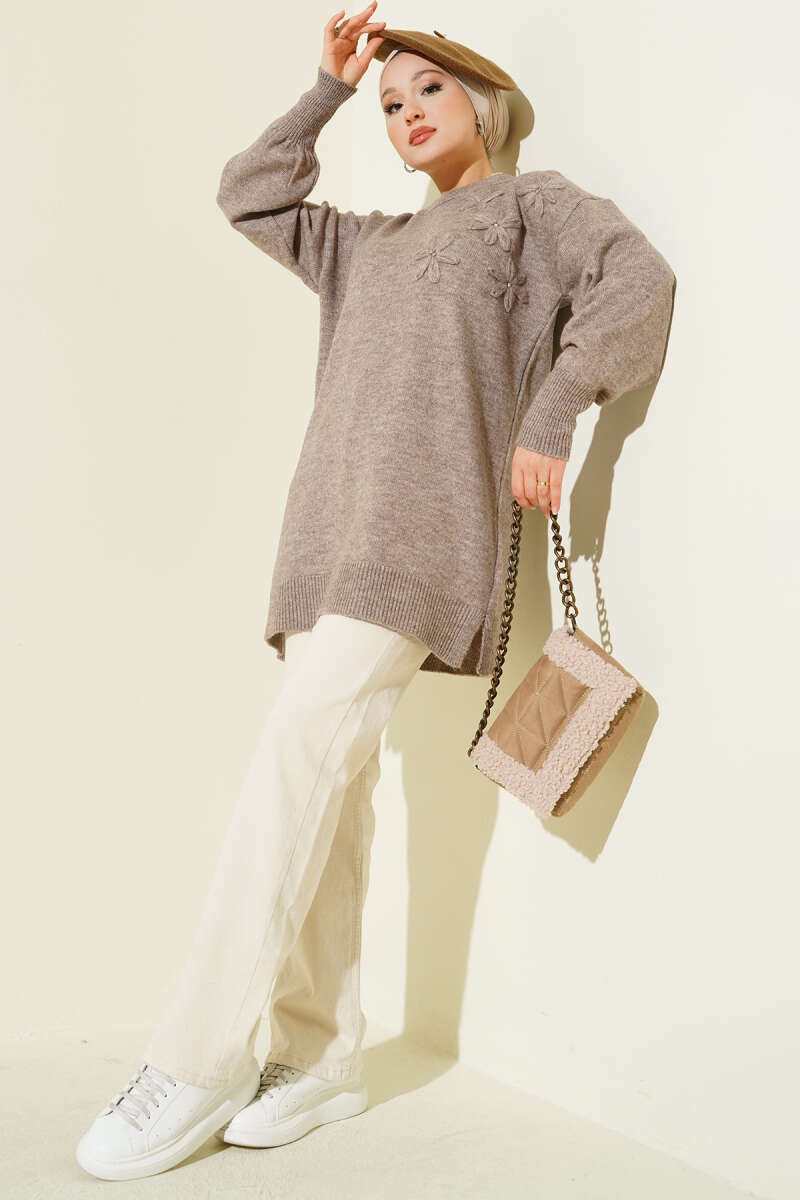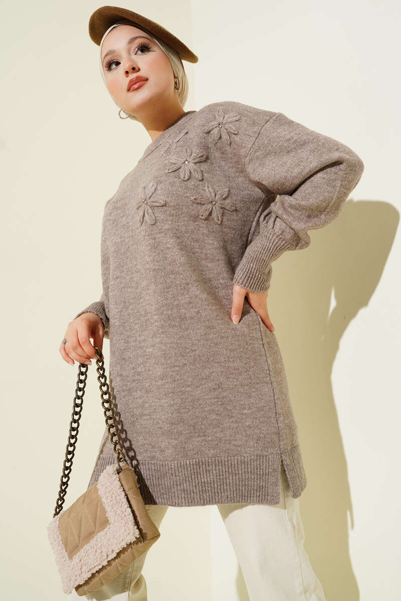 Çiçek Detaylı Yumoş Triko Tunik Nefti