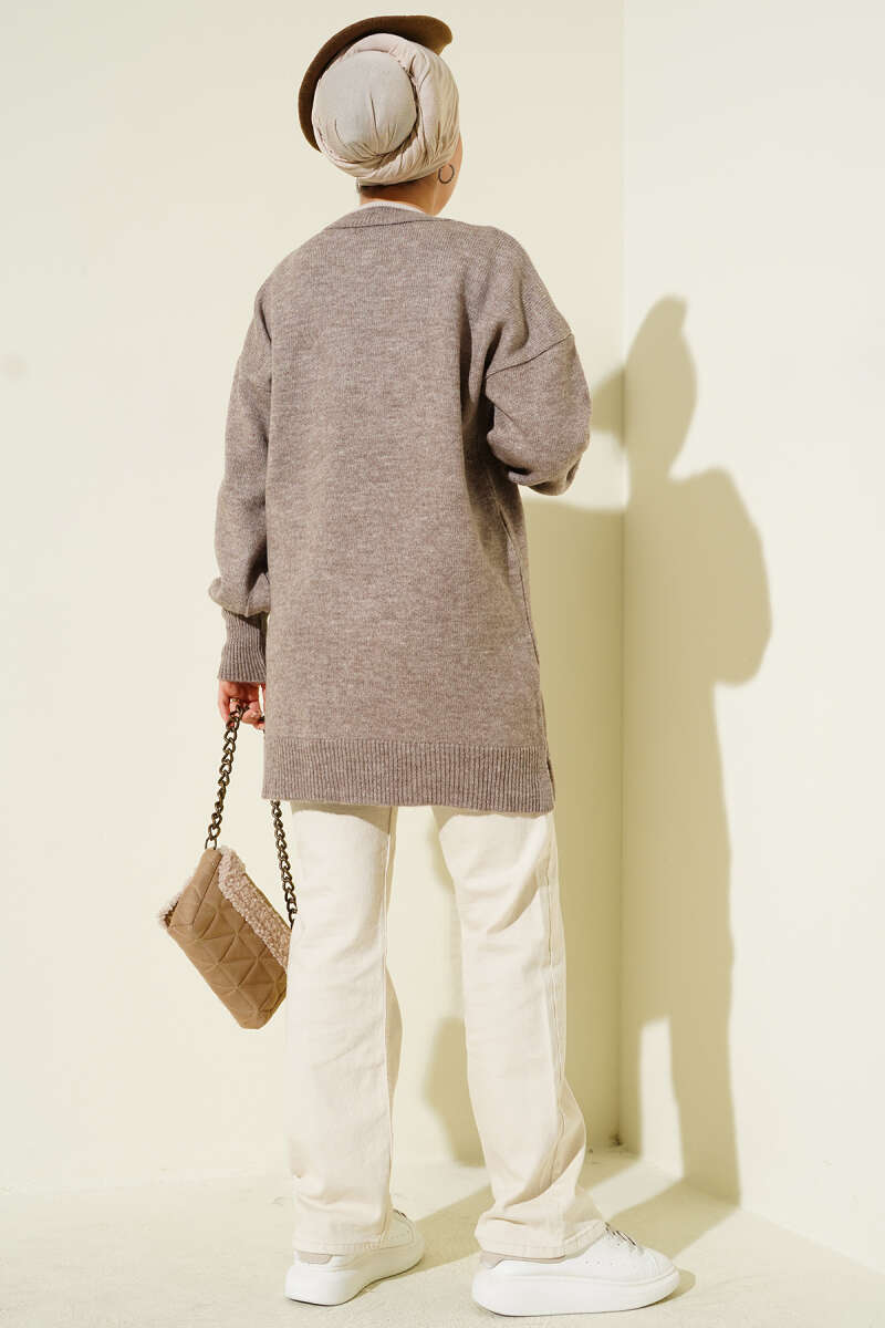 Kiraz Salkımlı Kabartma Yumoş Triko Tunik Latte