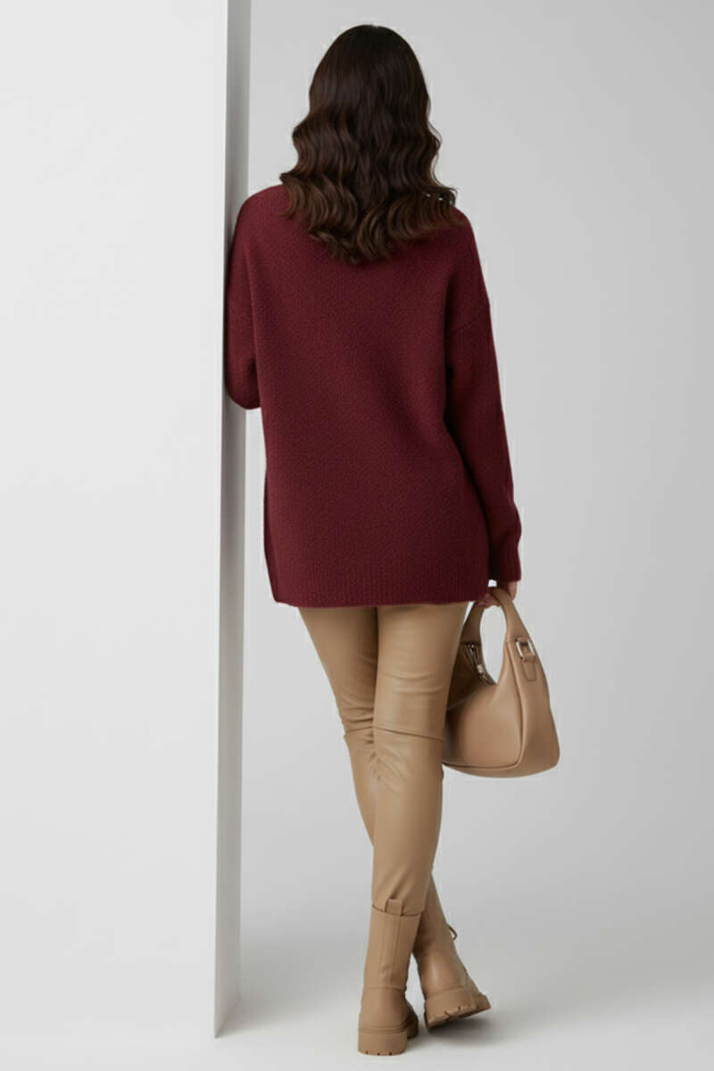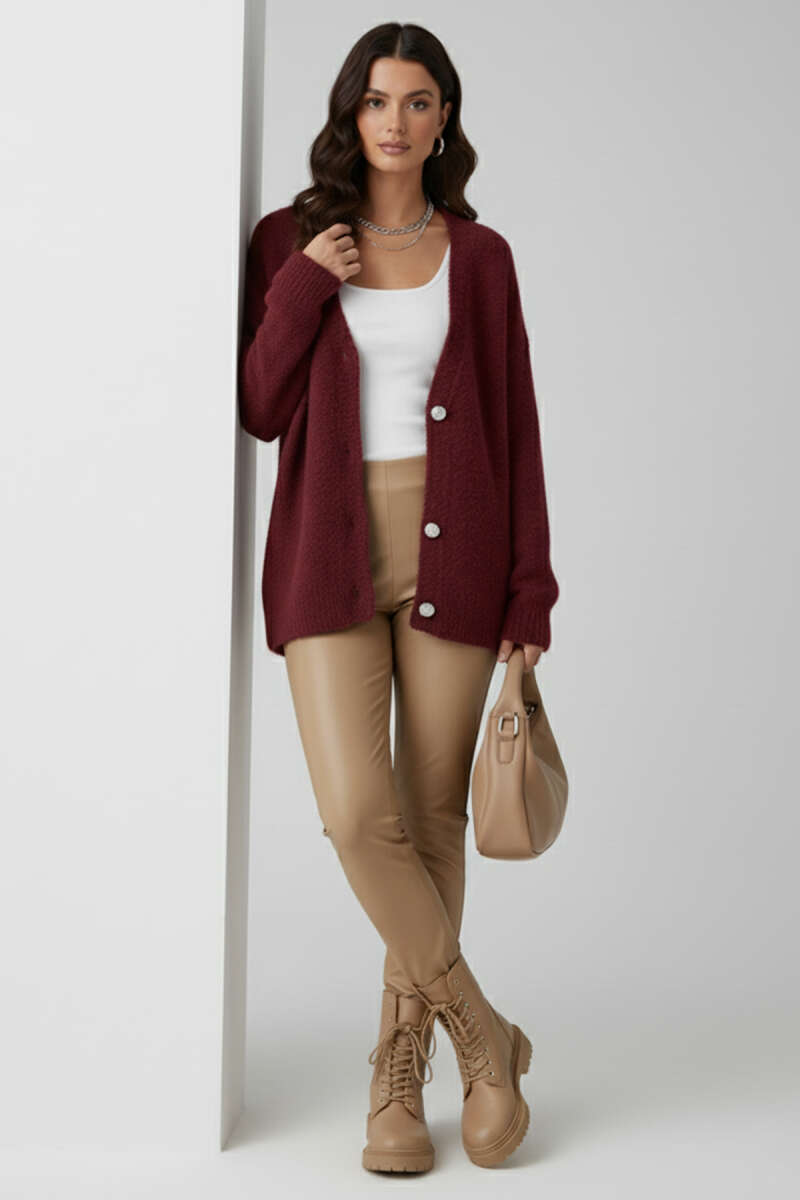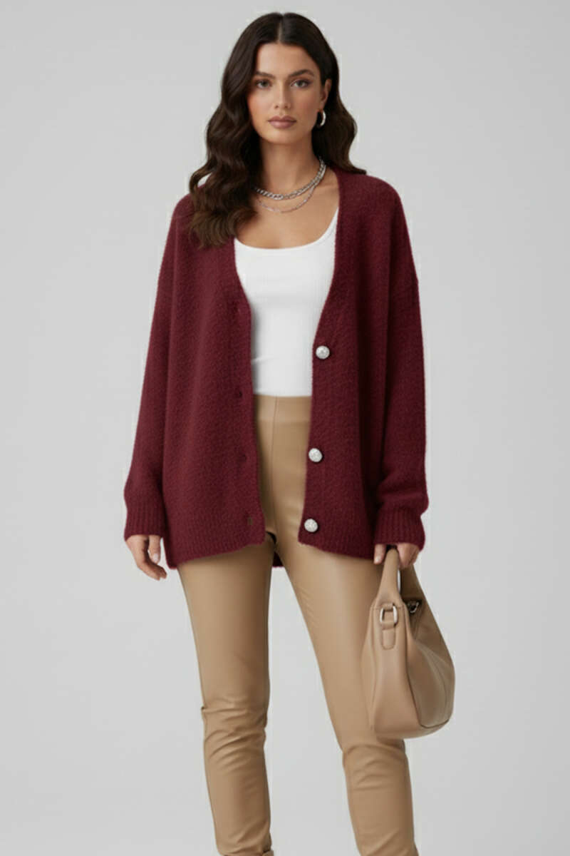Çiçek Düğme Detaylı Triko Hırka Bordo