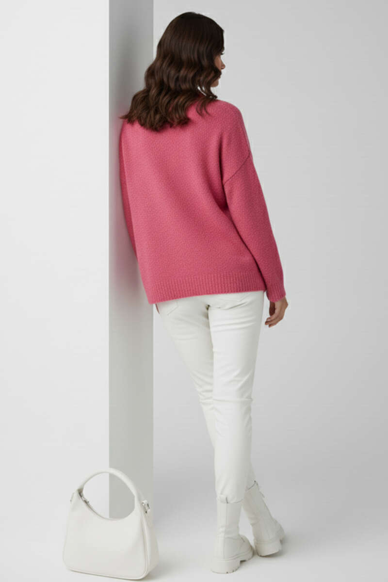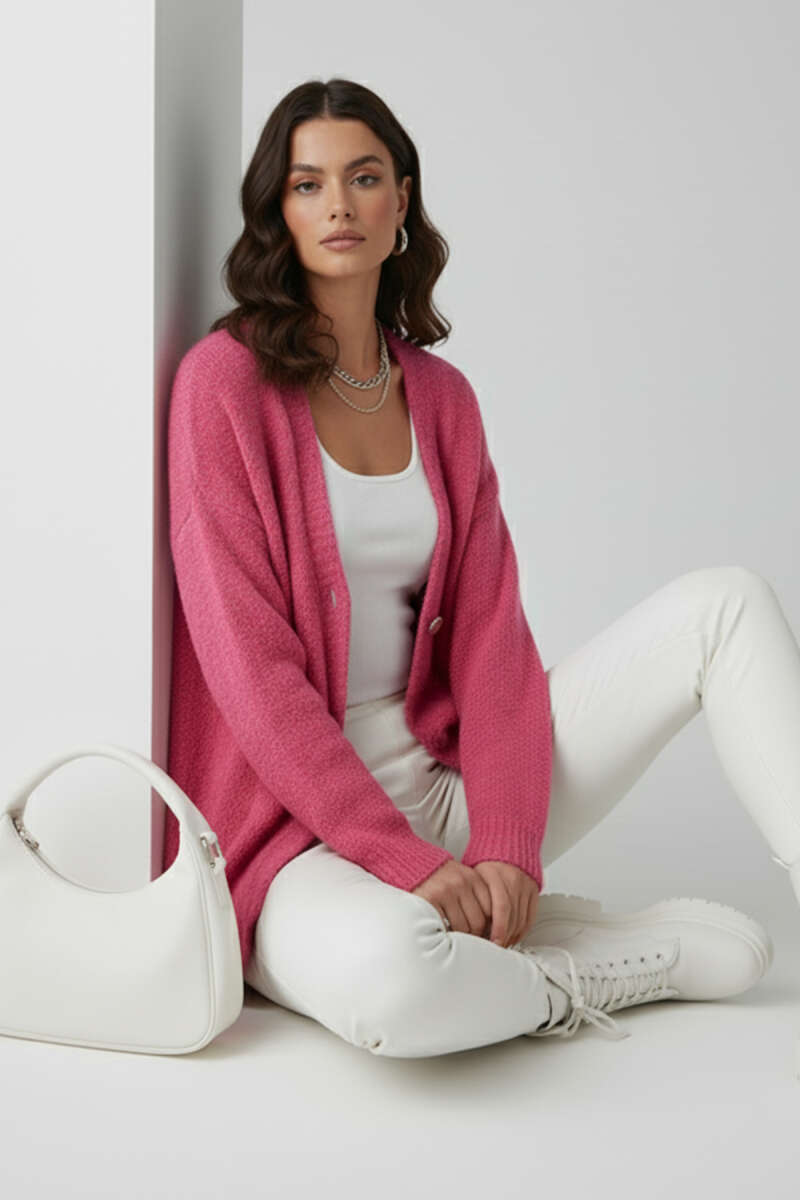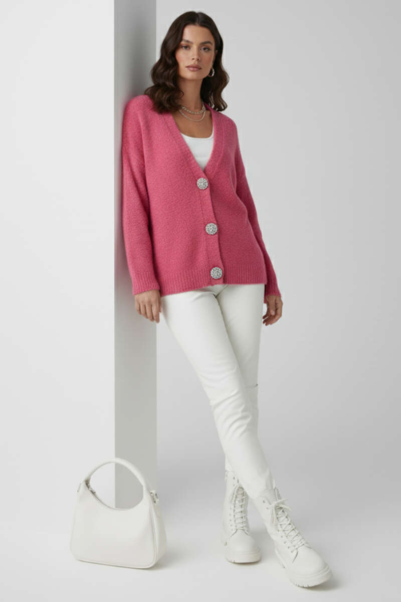 Çiçek Düğme Detaylı Triko Hırka Pembe