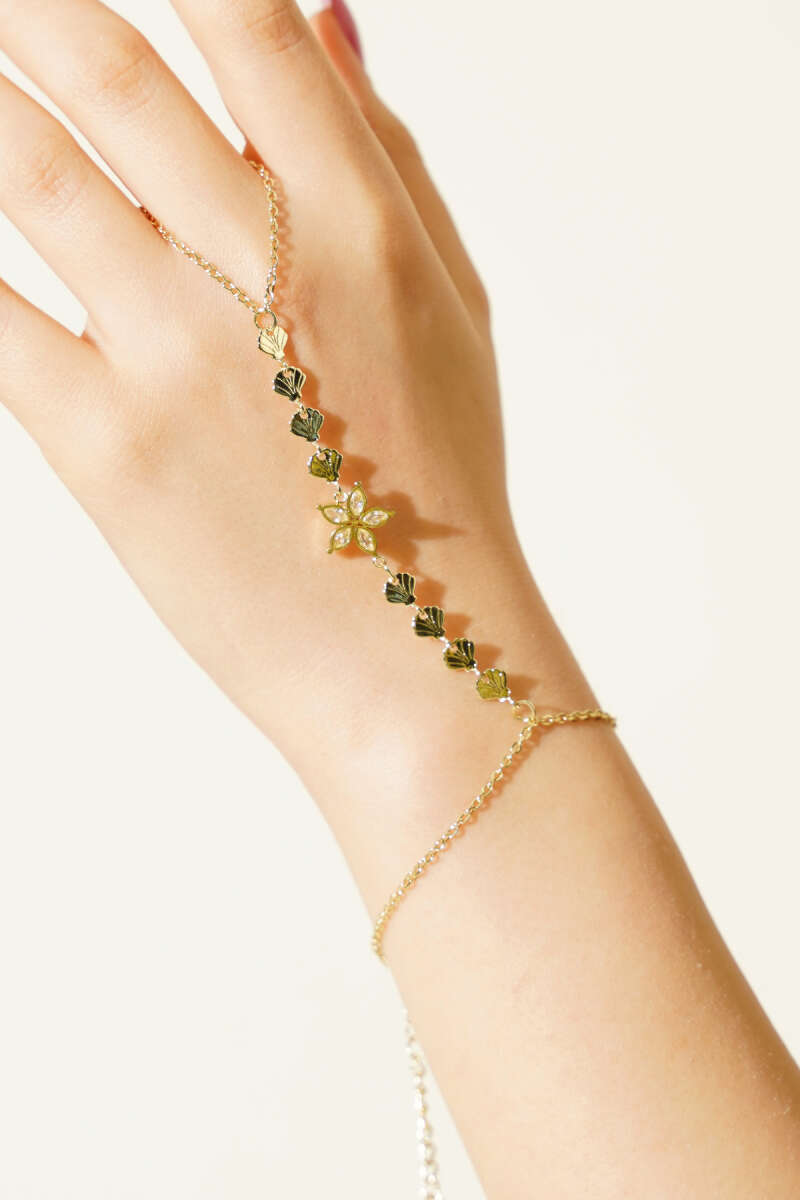 Çiçek Figürlü Taşlı Şahmeran Gold