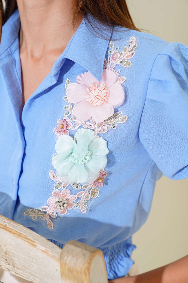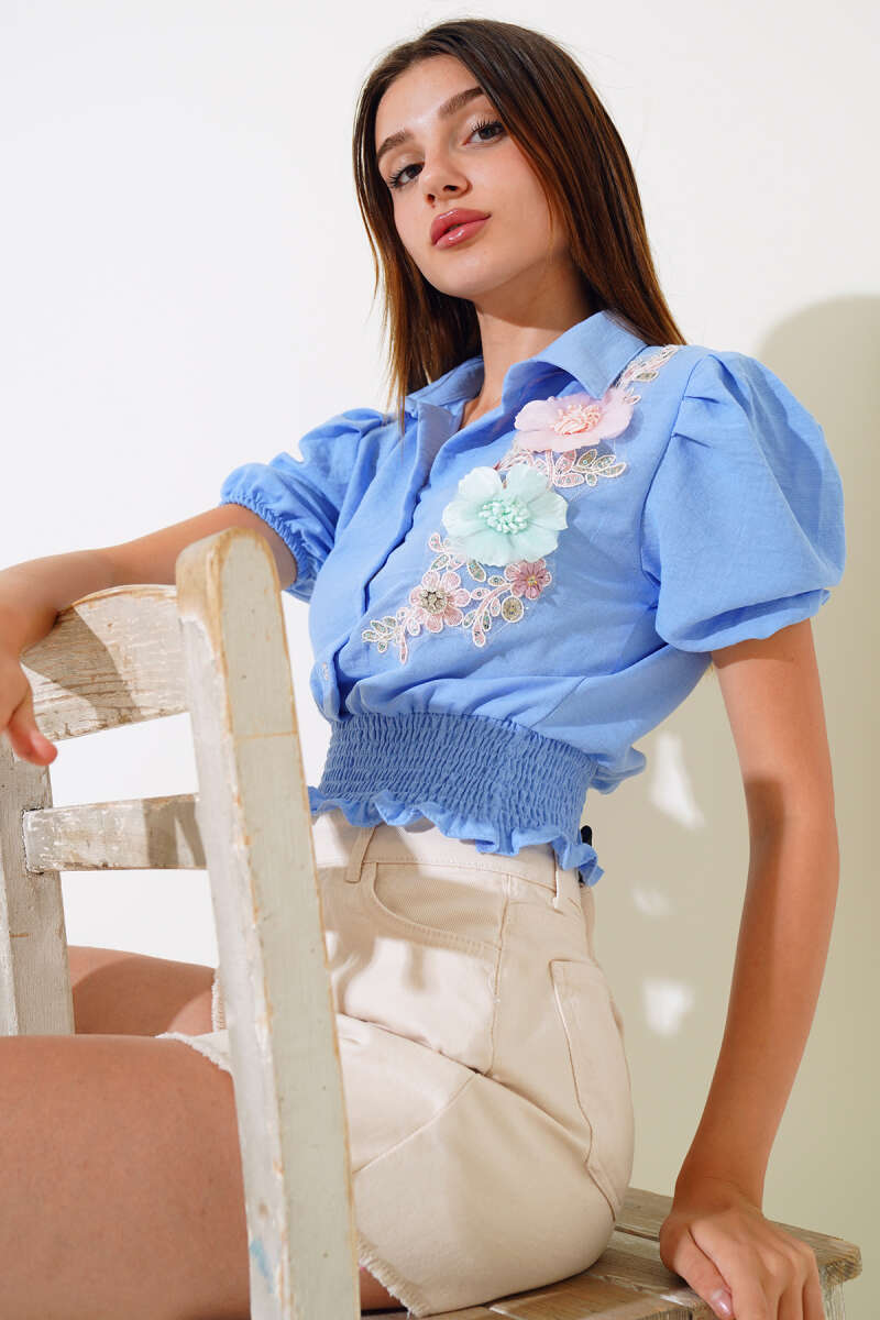 Çift Cep Kapaklı Salaş Gofre Gömlek Beyaz