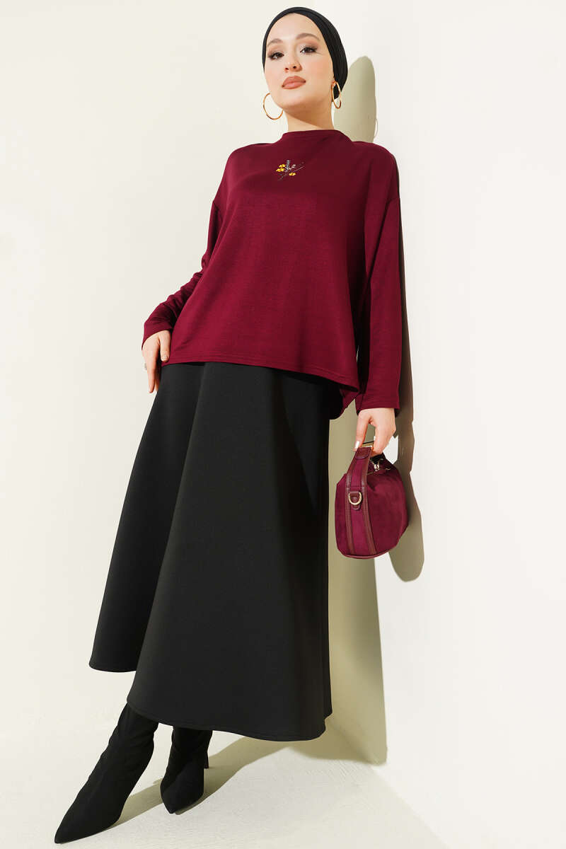 Düz Kloş Etek Bordo