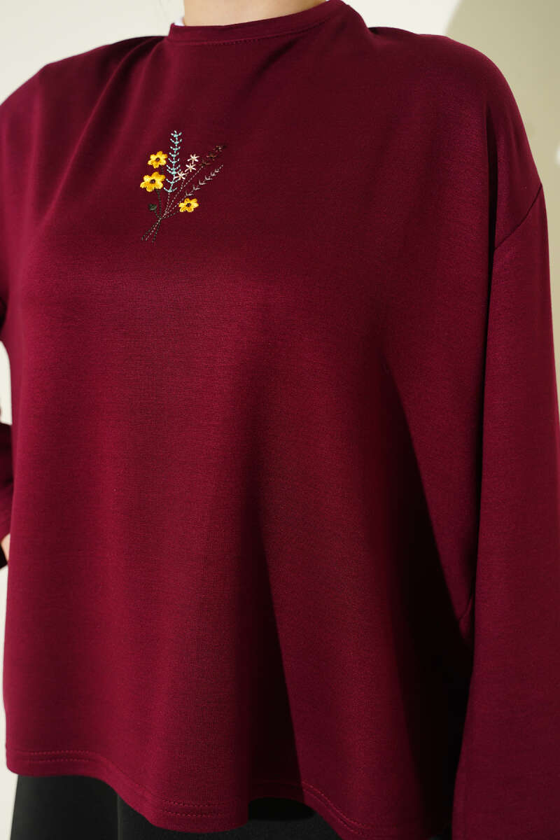 Çiçek İşlemeli Loyşa Bluz Kahve