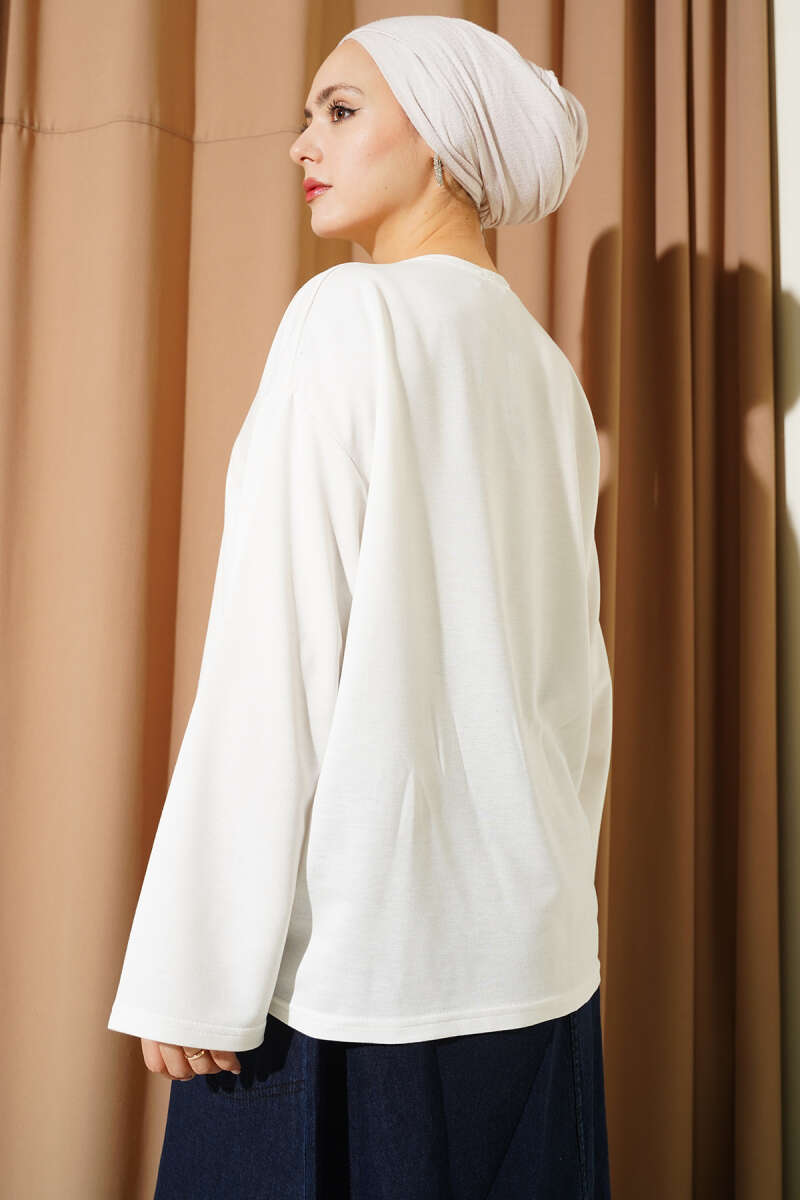 Bisiklet Yaka Basic Body Ekru