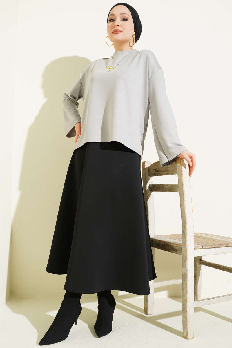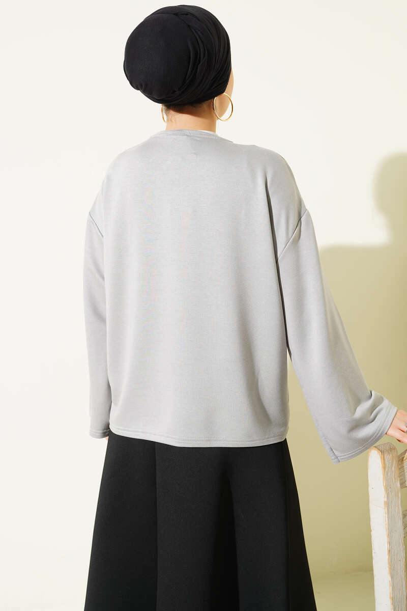 Düşük Kol Detaylı Triko Tunik Gri
