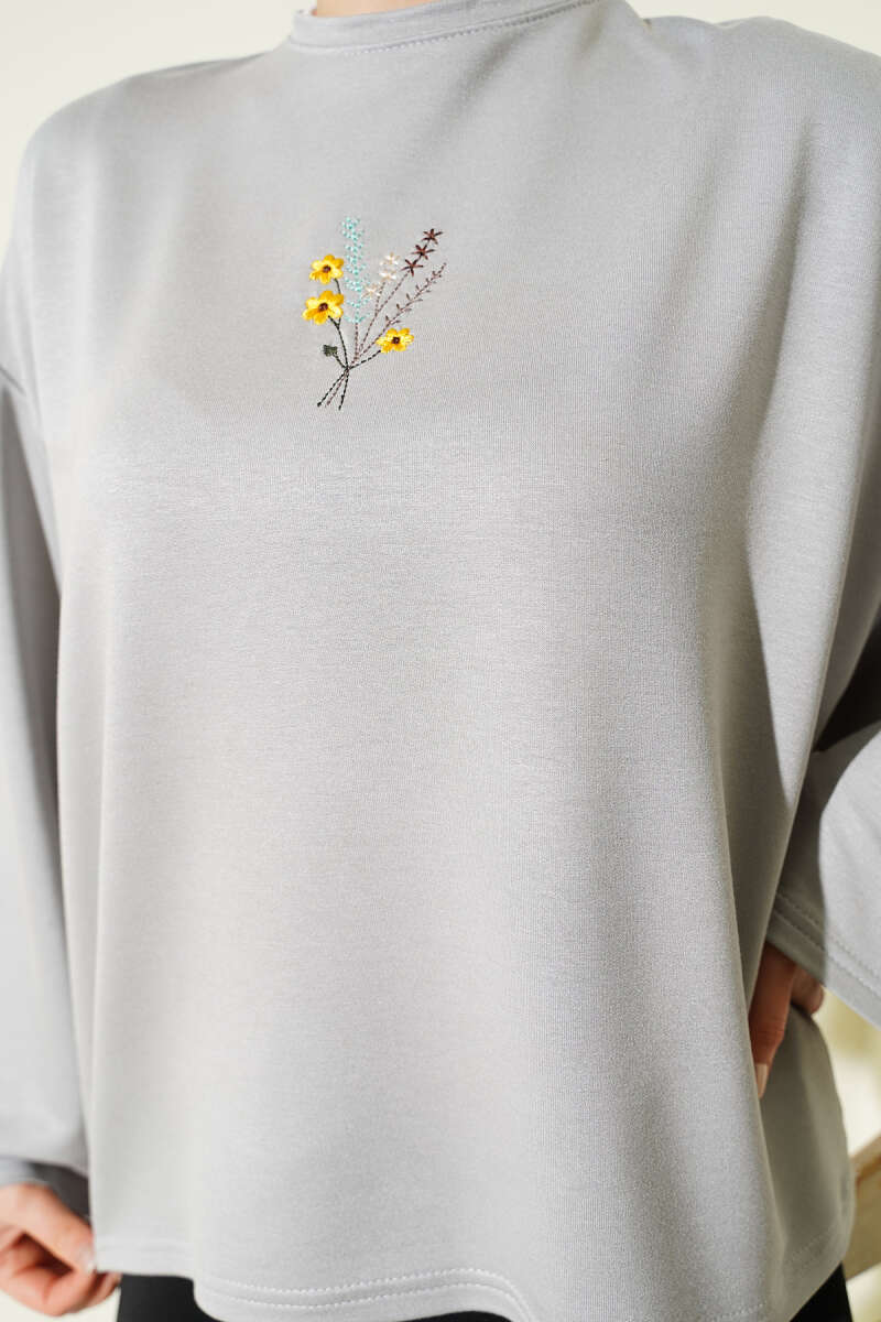 Çiçek İşlemeli Loyşa Bluz Haki