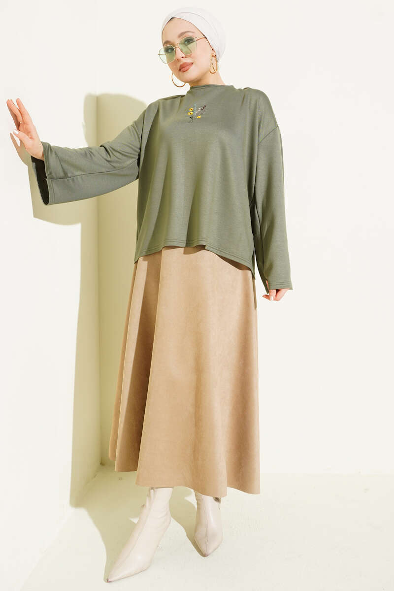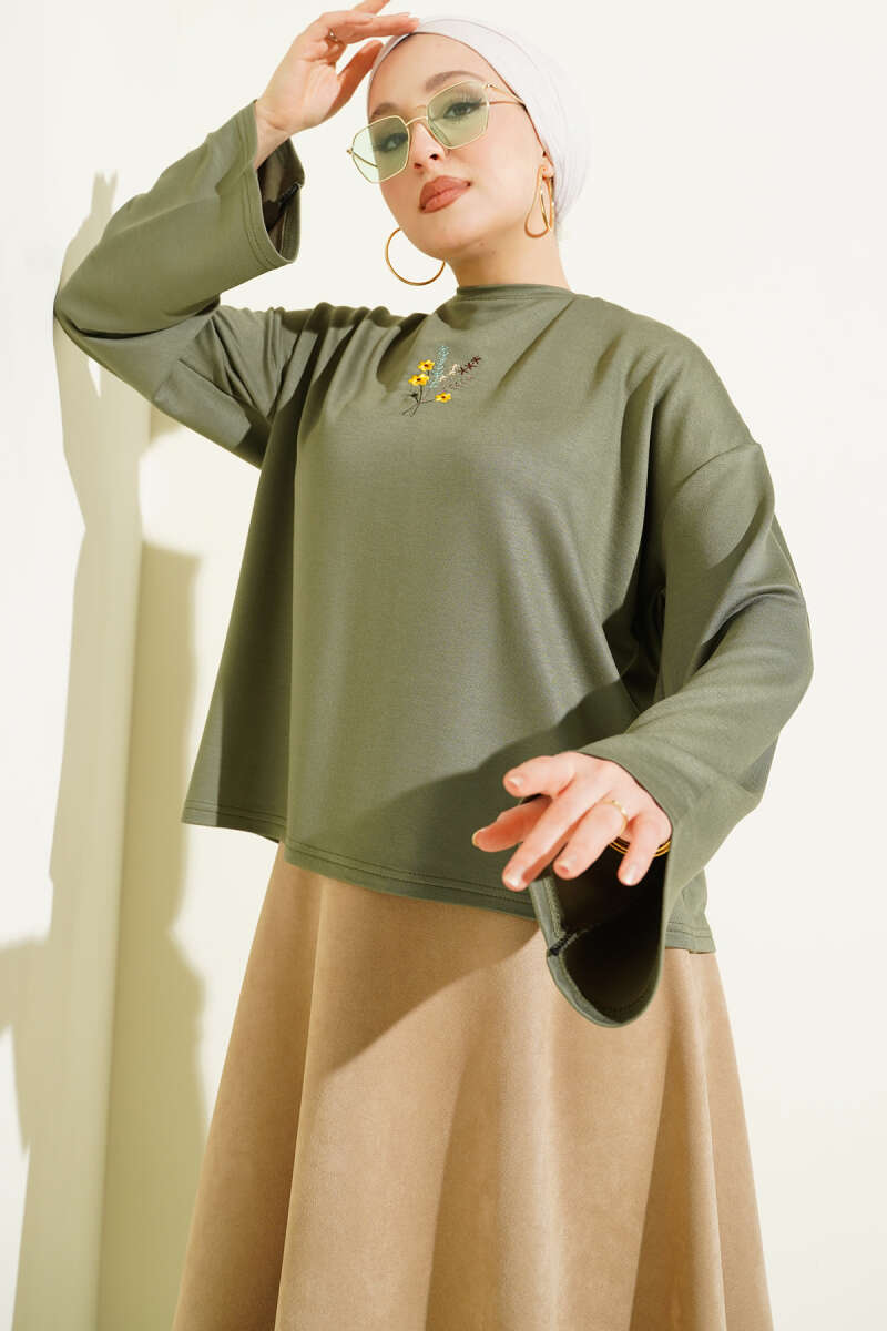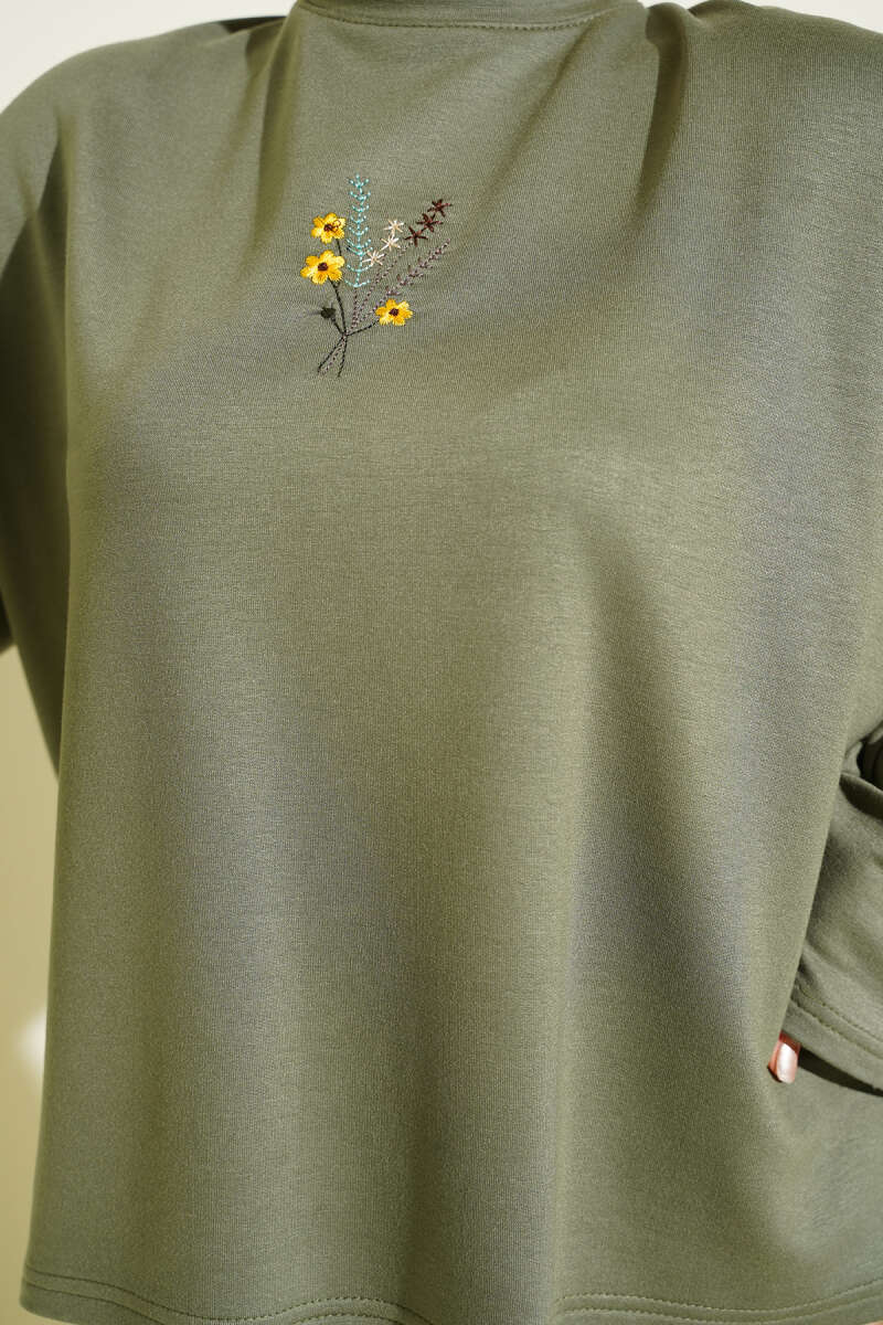 Çiçek İşlemeli Loyşa Bluz Kahve