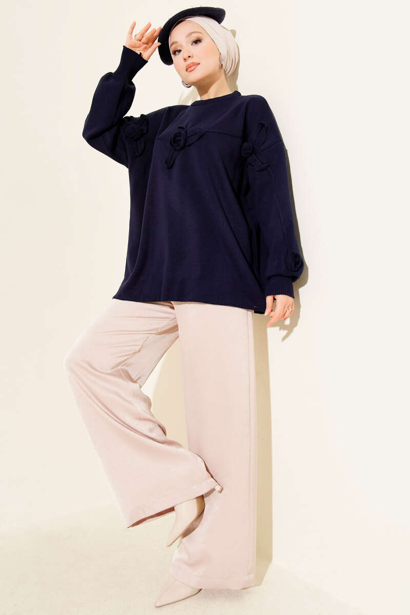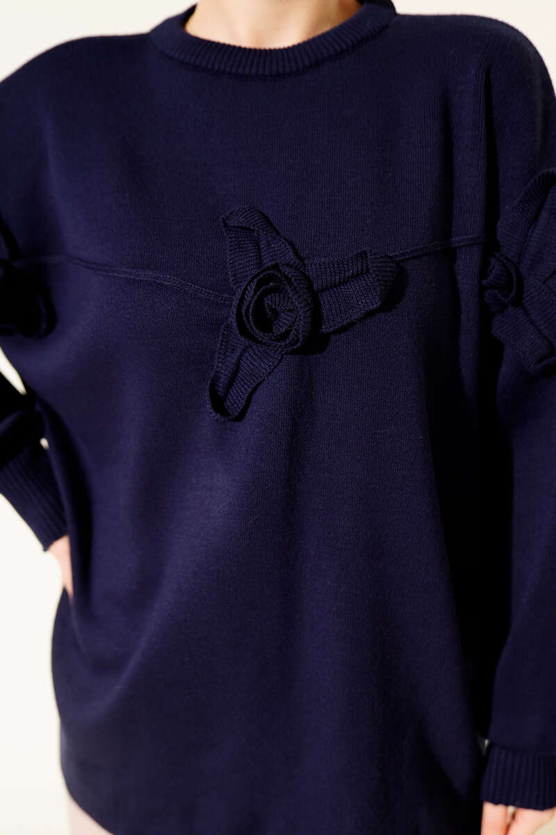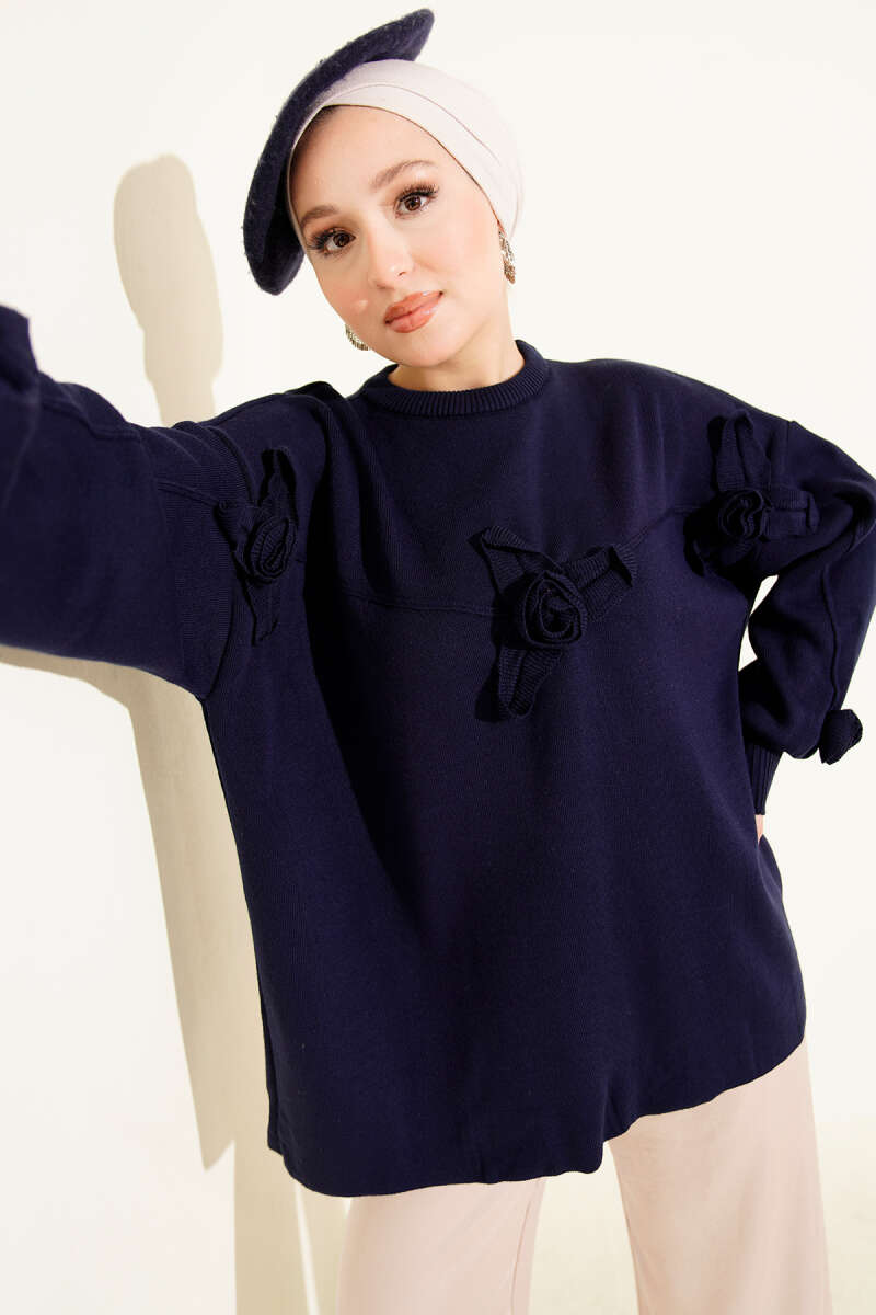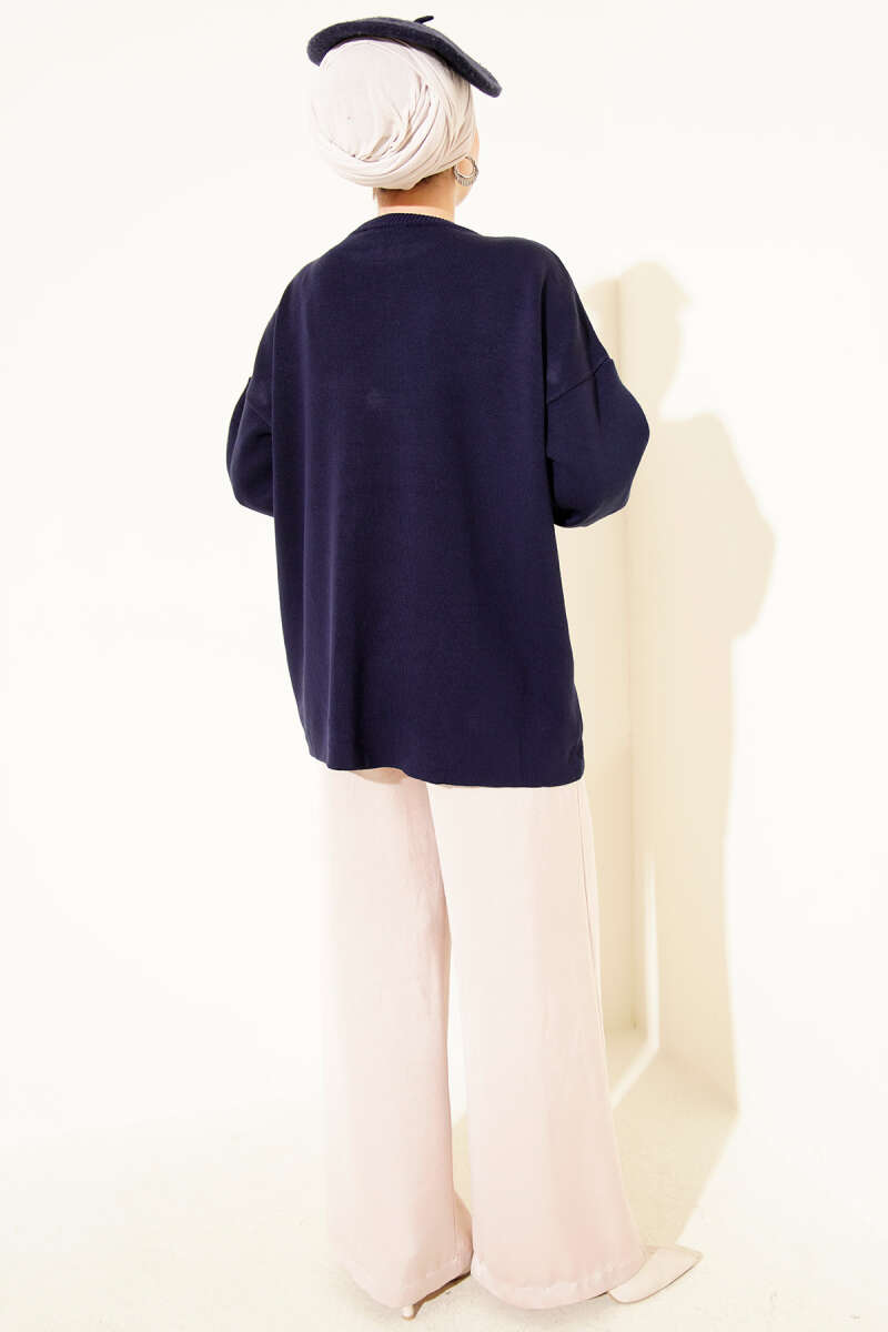 Kol Ribanalı Oversize Triko Tunik Lacivert