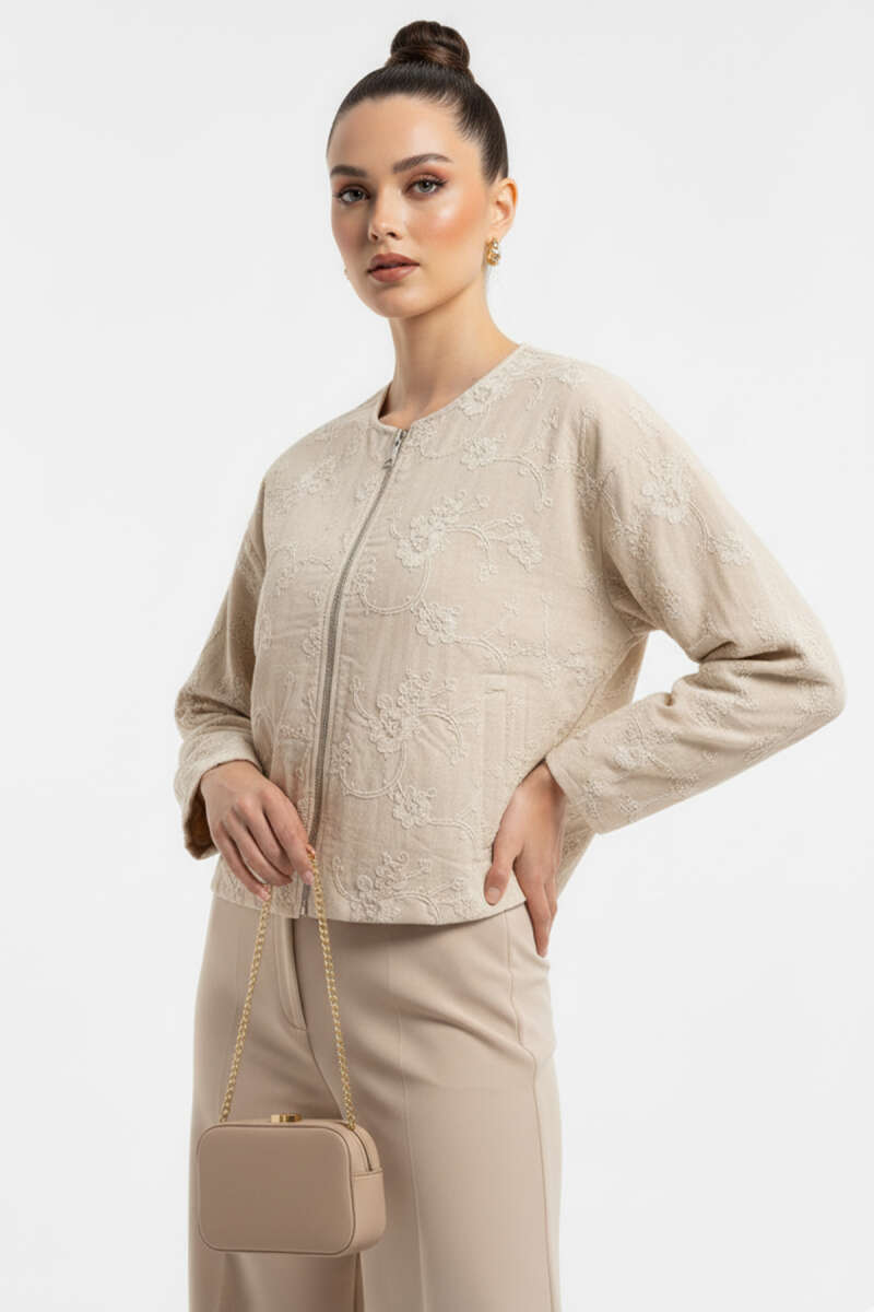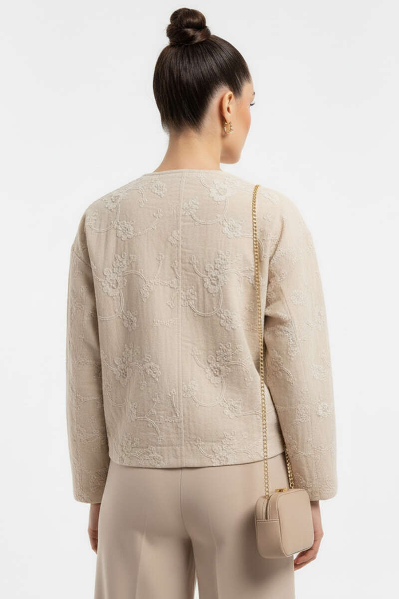 Ebruli Çiçek Şerit Geçişli Şal Latte