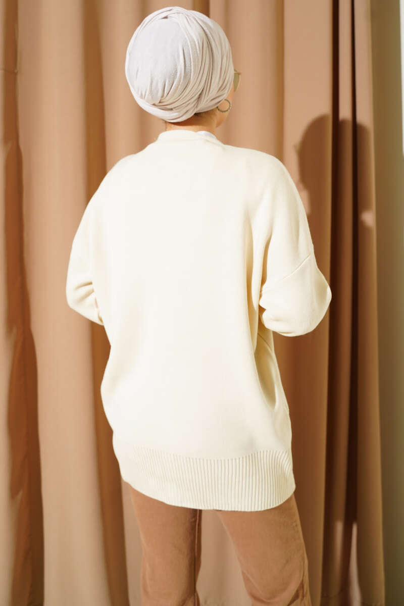 Düşük Omuz Düğmeli Triko Hırka Ekru