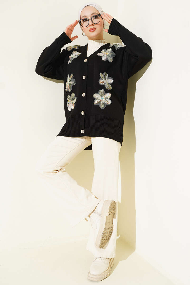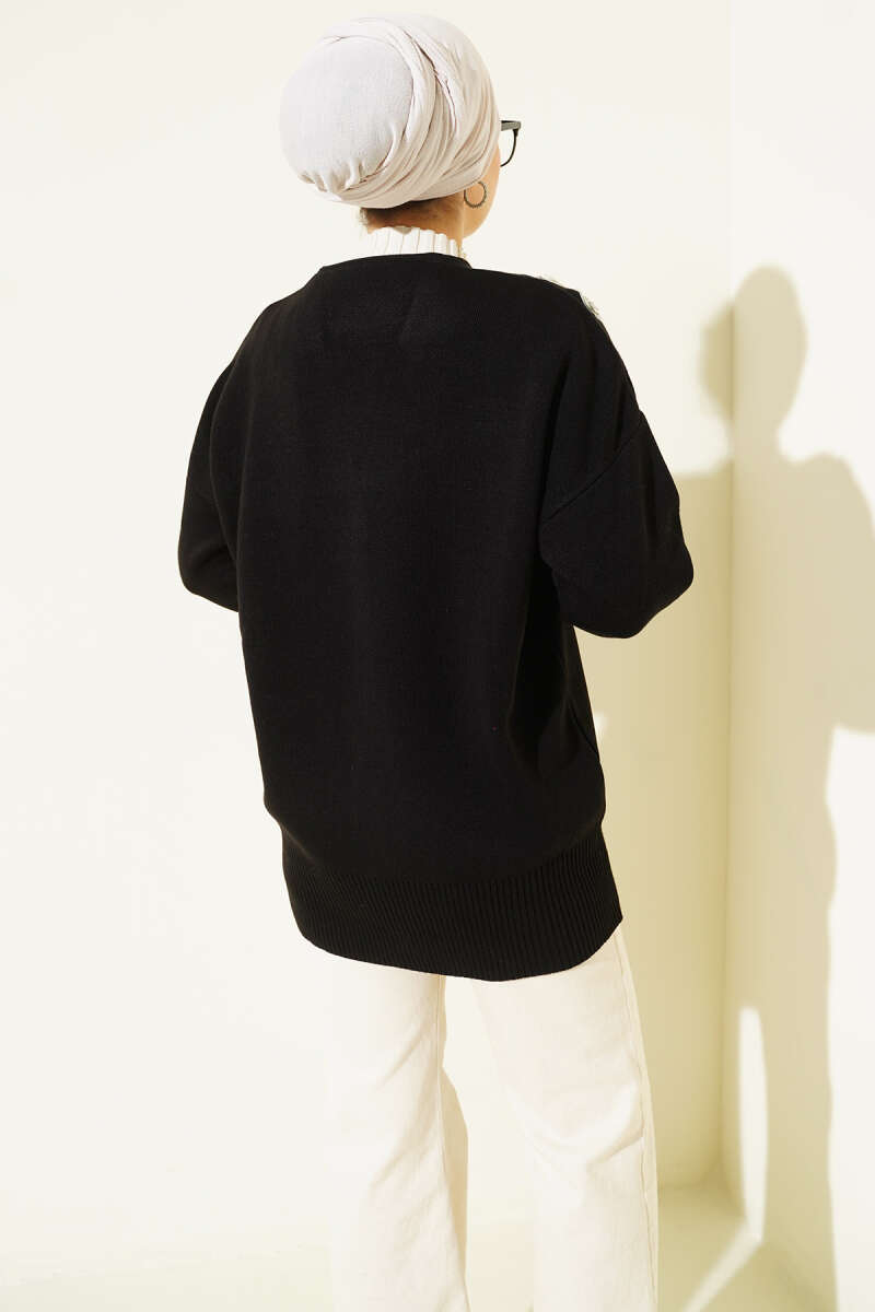 Bisiklet Yaka Sakal Detaylı Kazak Siyah