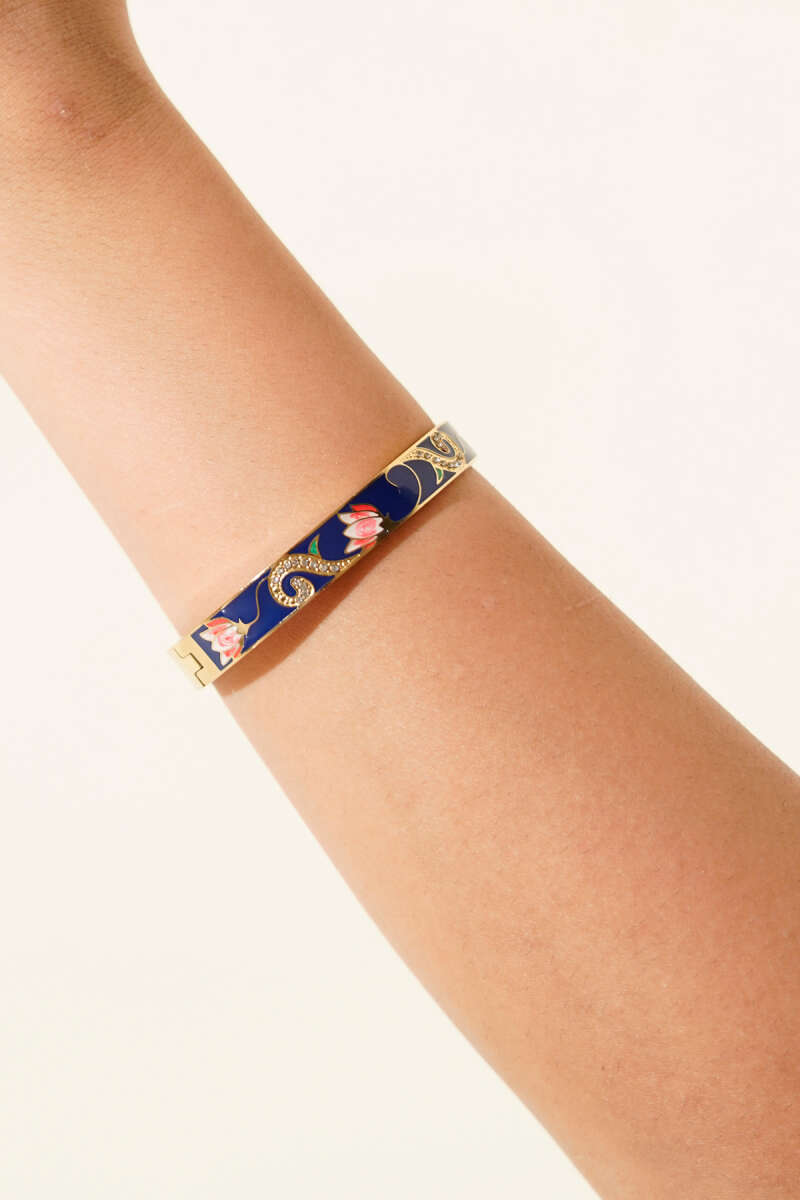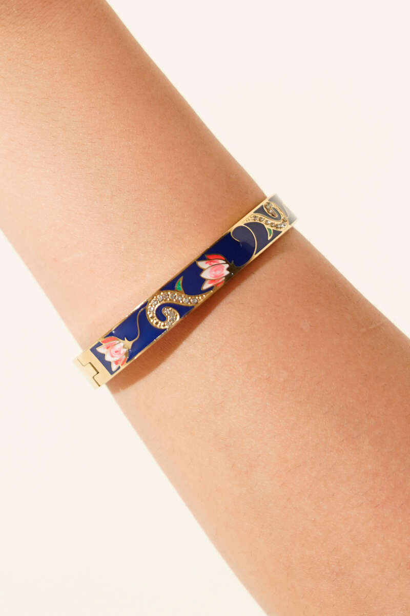 Çiçek Motifli Kelepçe Bilezik Mavi