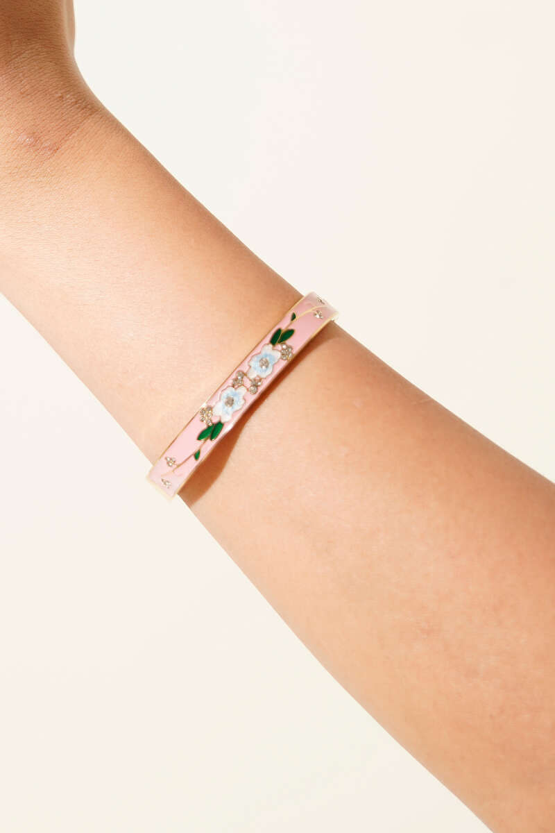 Çiçek Motifli Kelepçe Bilezik Pembe
