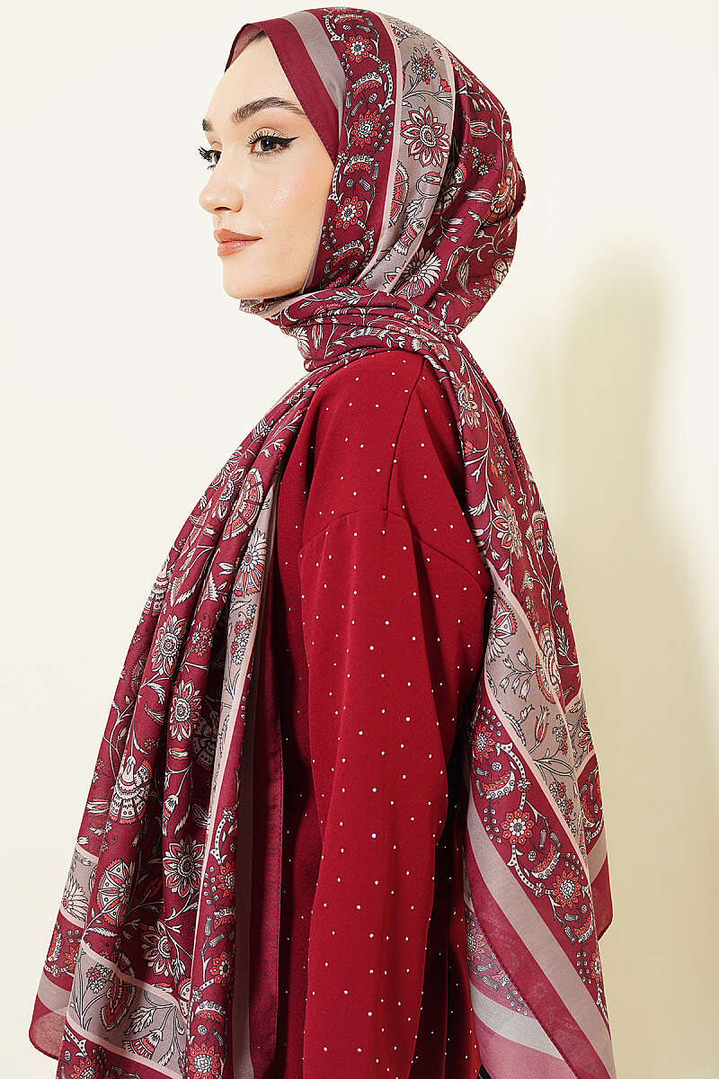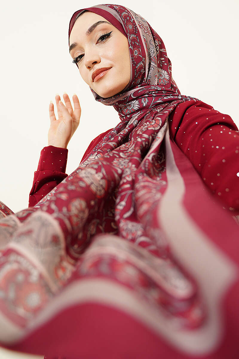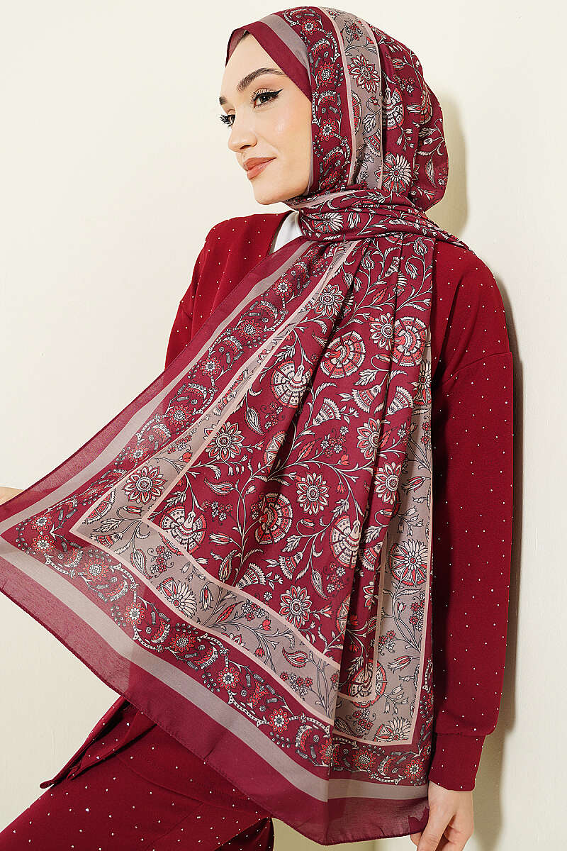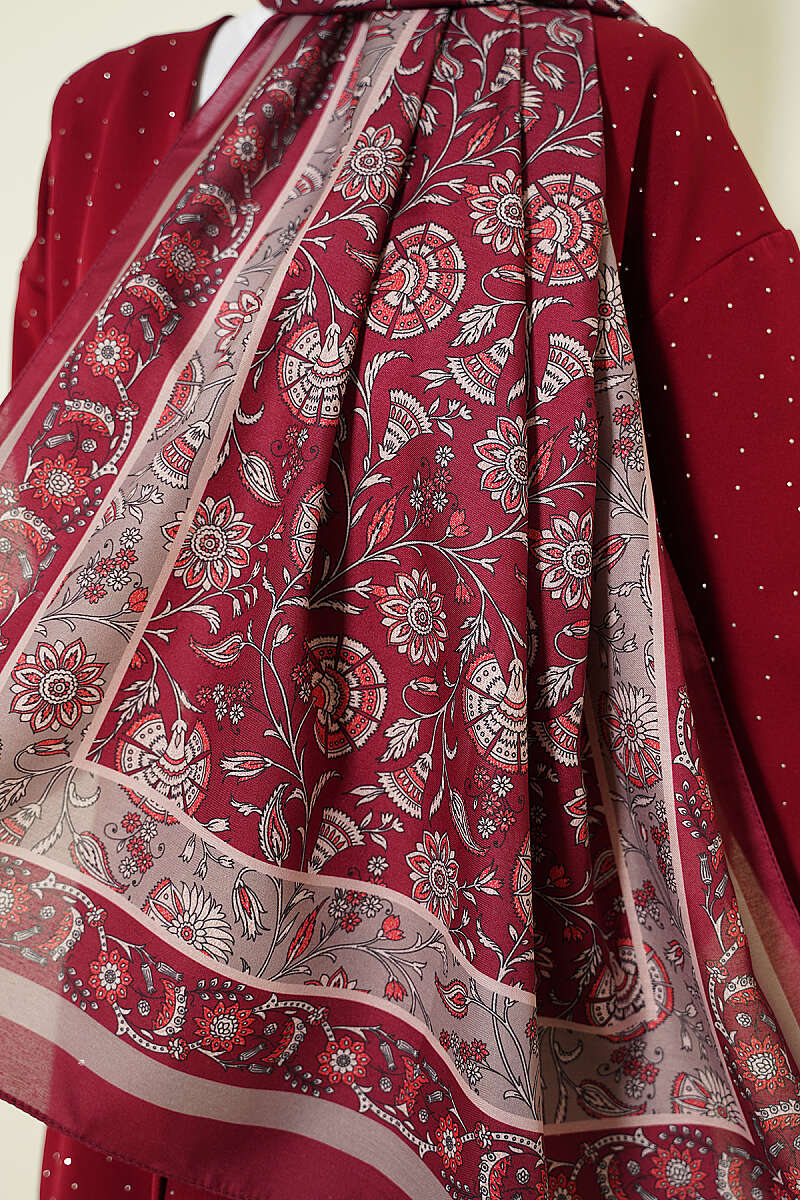 Çiçek Motifli Soft Şal Bordo