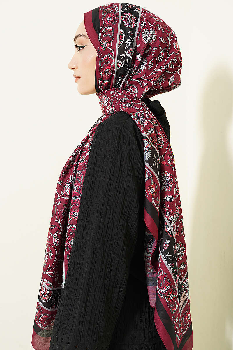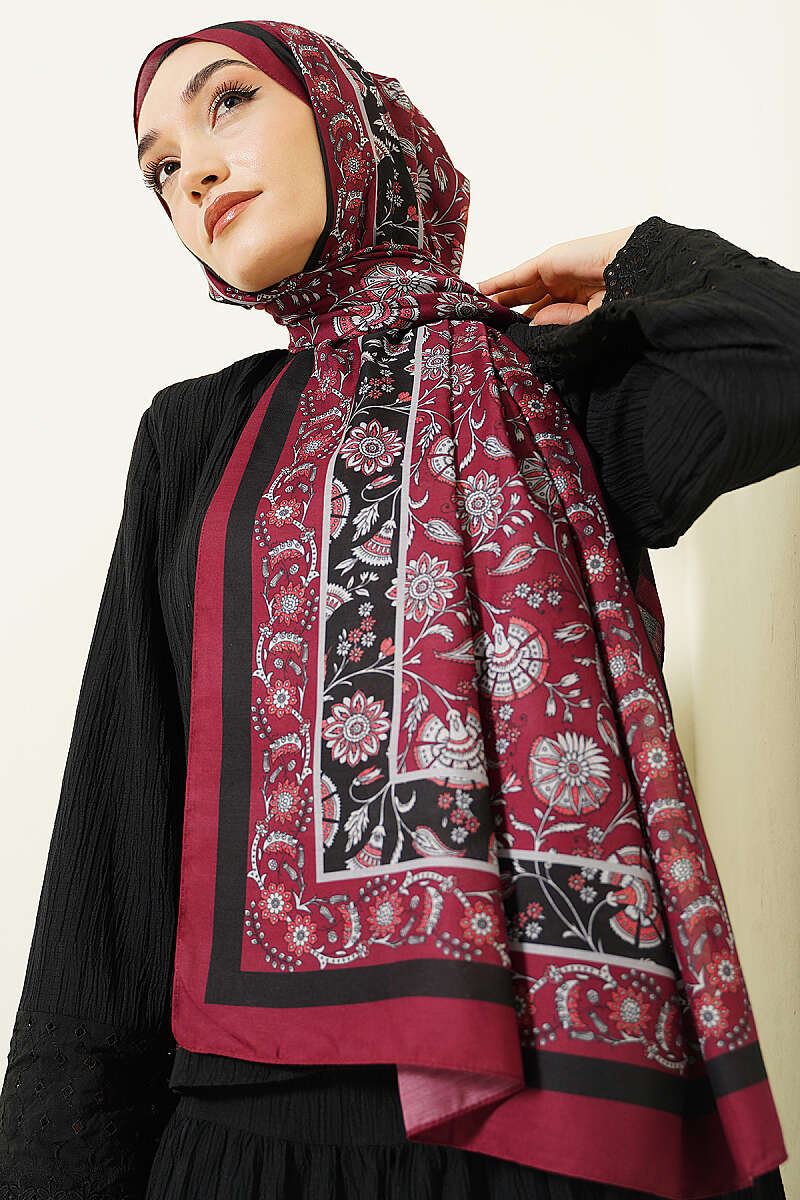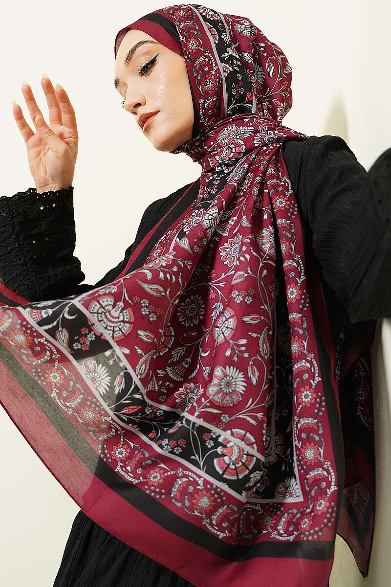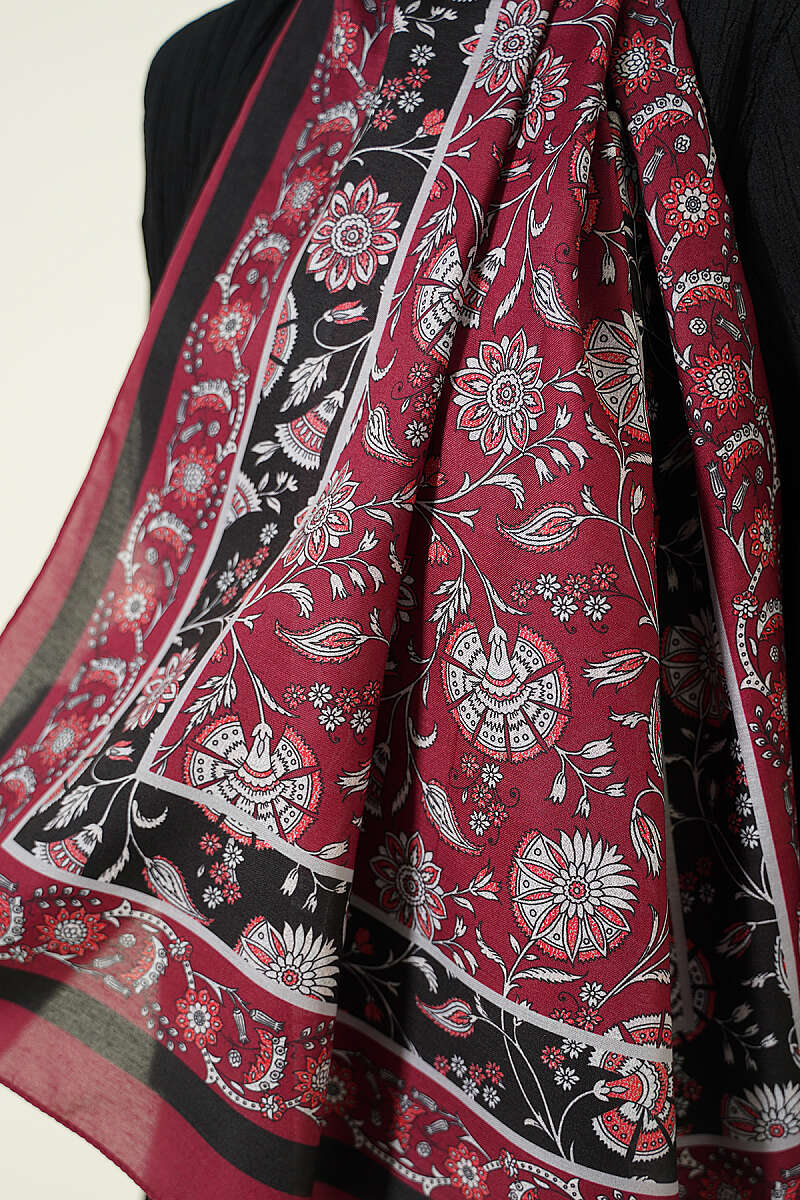 Çiçek Motifli Soft Şal Zeytin Yeşili