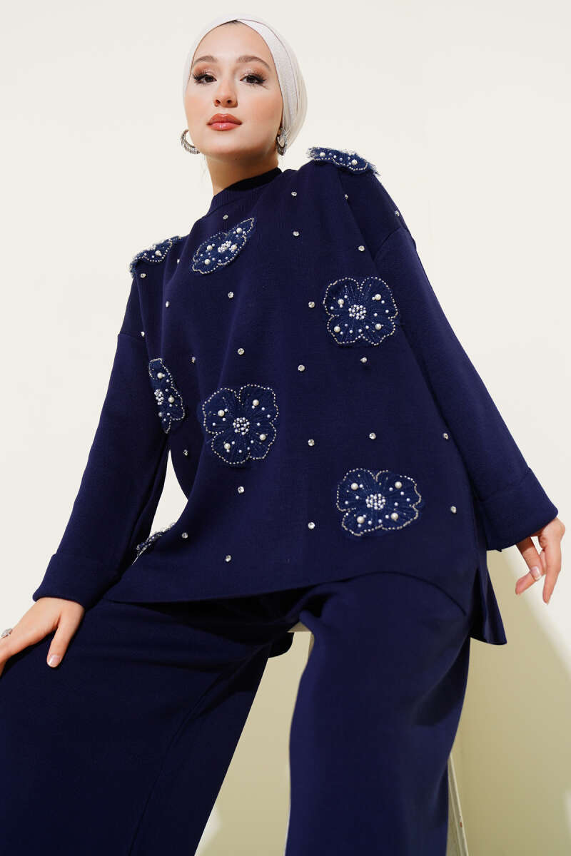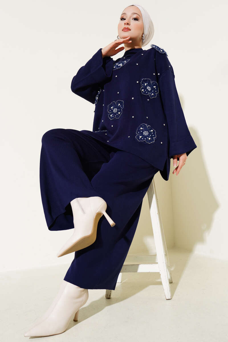 Taş Süsleme Detaylı İkili Takım Lacivert
