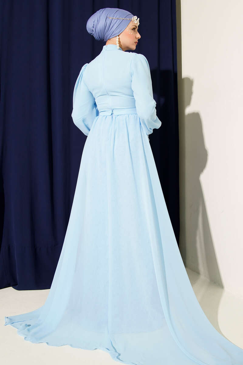 Omuz Pelerinli Taş Detaylı Abiye Elbise Lacivert
