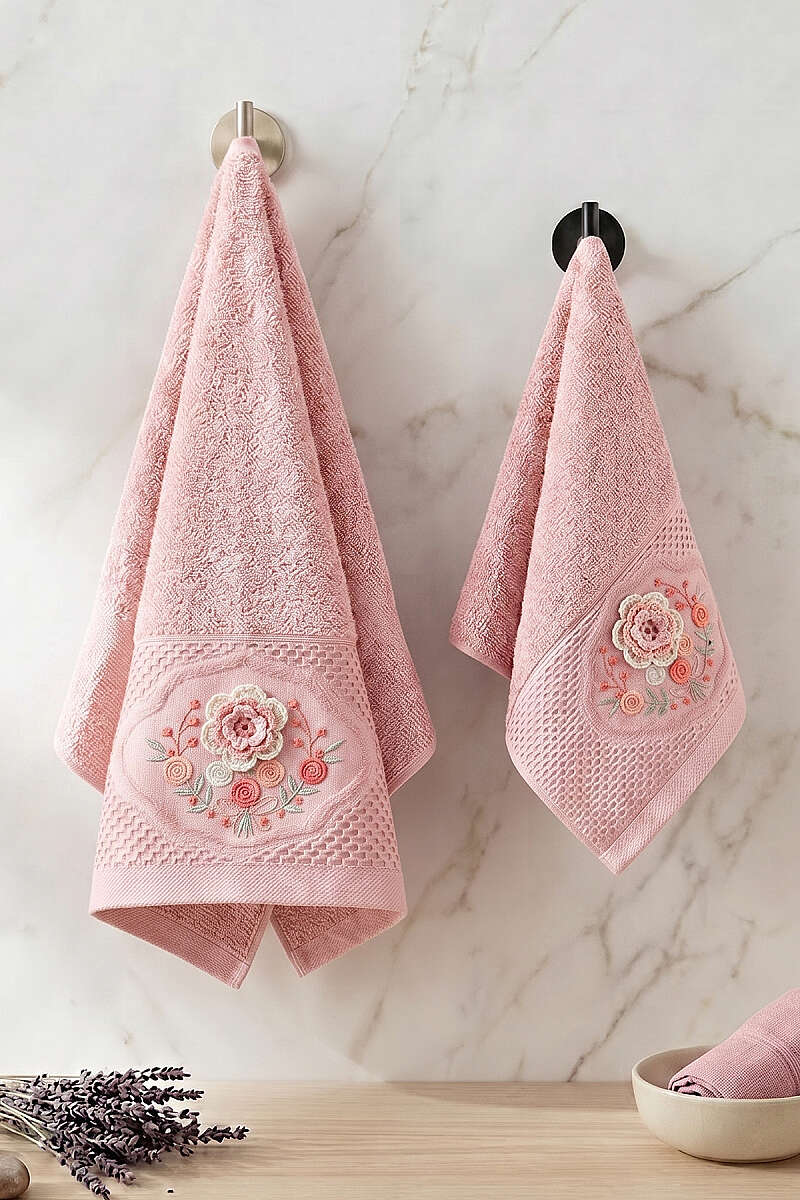 Gelince Haber VerBu şık ve işlemeli havlu seti, banyonuza hem nostaljik hem de zarif bir hava katacak türden. Üzerindeki nakış ve kabartmalı çiçek detayları, ürünün hassas bir kategoride olduğunu gösteriyor.