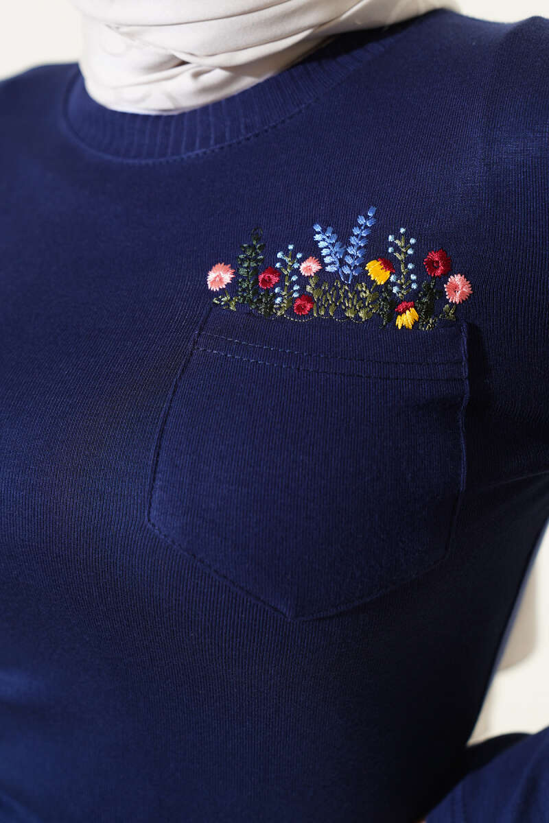 Bilek İpli Fitilli Kaşe Tunik Lacivert