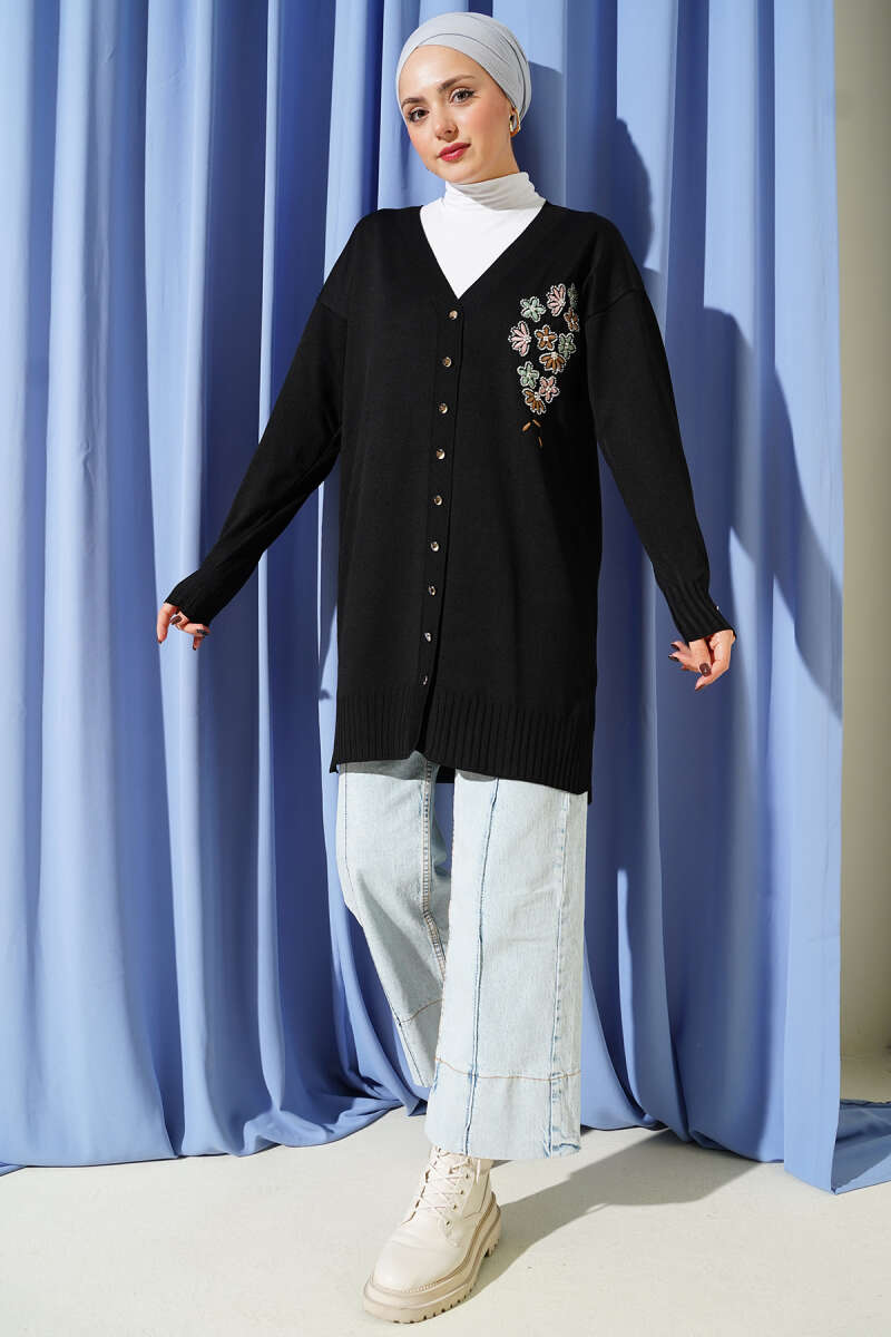 Küçük Kalp Nakışlı Triko Kazak Siyah