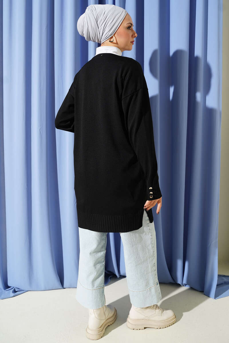 Duble Kol Zikzak Desen Triko Kazak Siyah