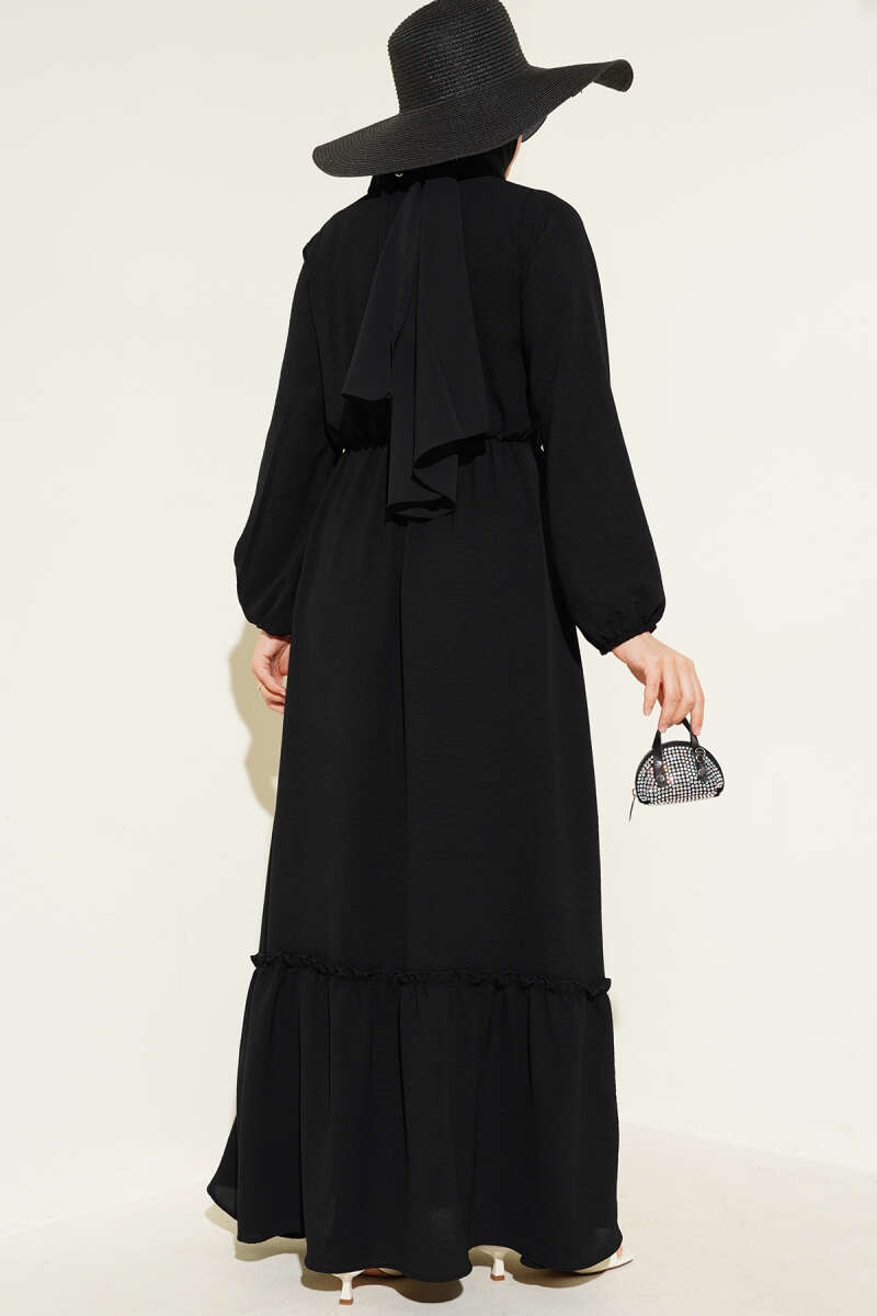 Omuz Pelerin Detaylı Abiye Elbise Siyah