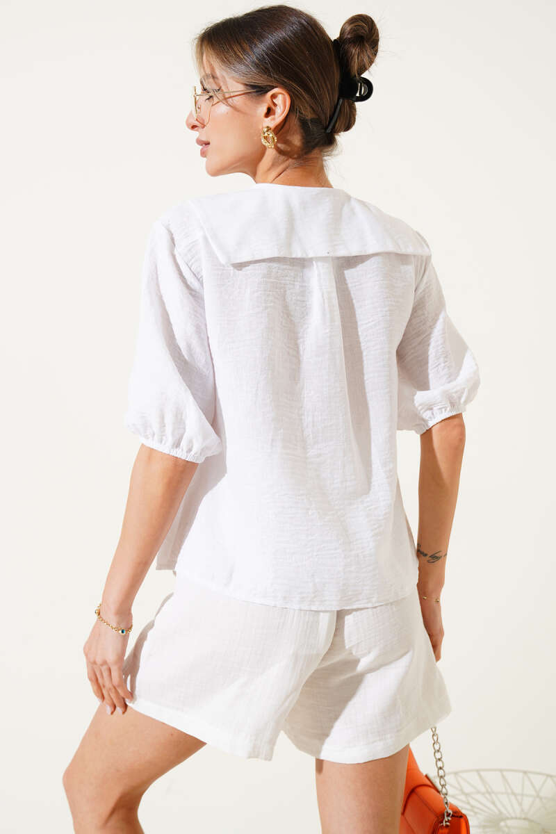 Duble Kol Oversize Kısa Gömlek Bej