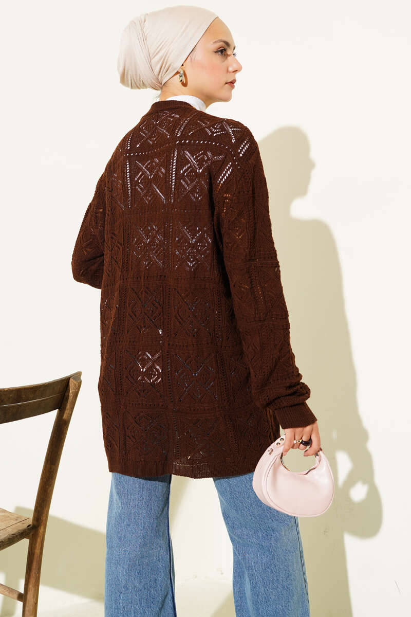 Leopar Desenli Şardonlu Triko Hırka Latte