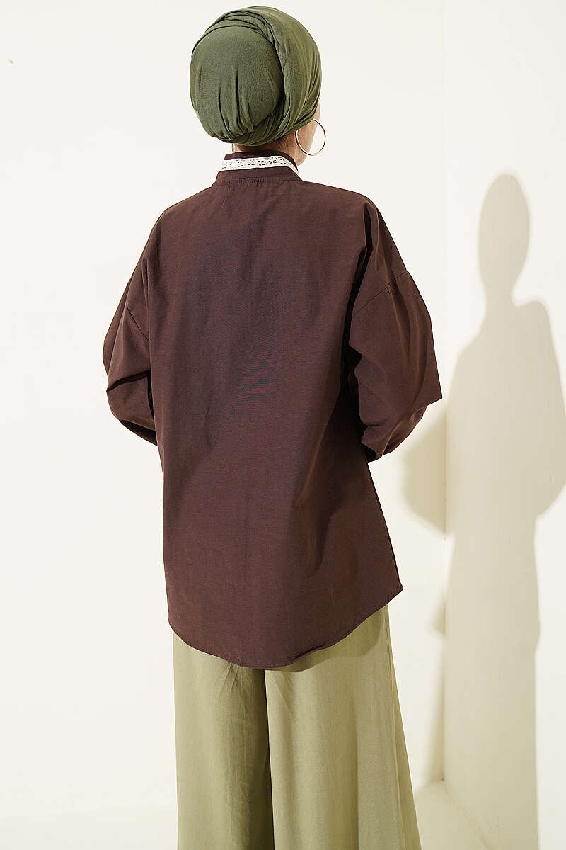 Beli Tünelli Salaş Kısa Gömlek Kahve