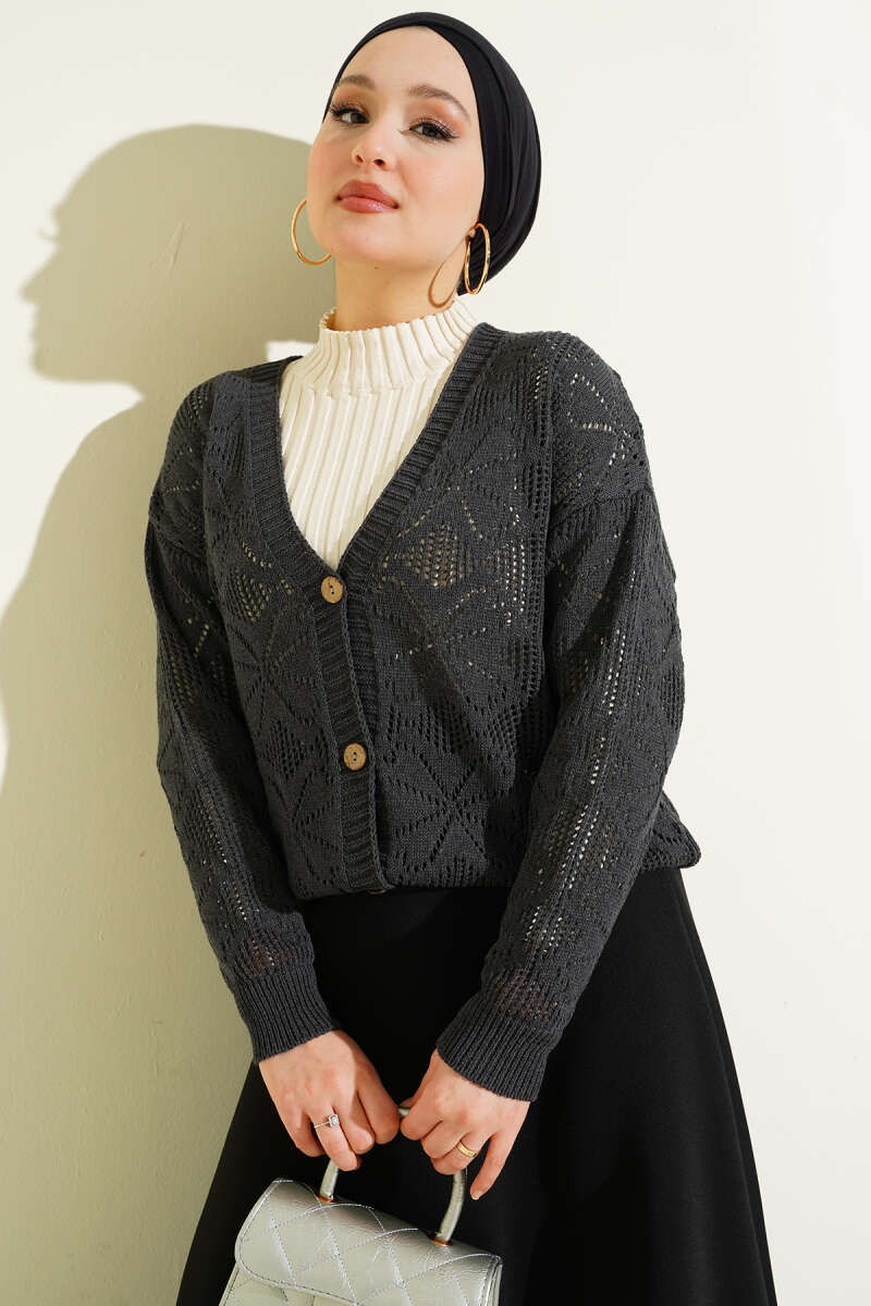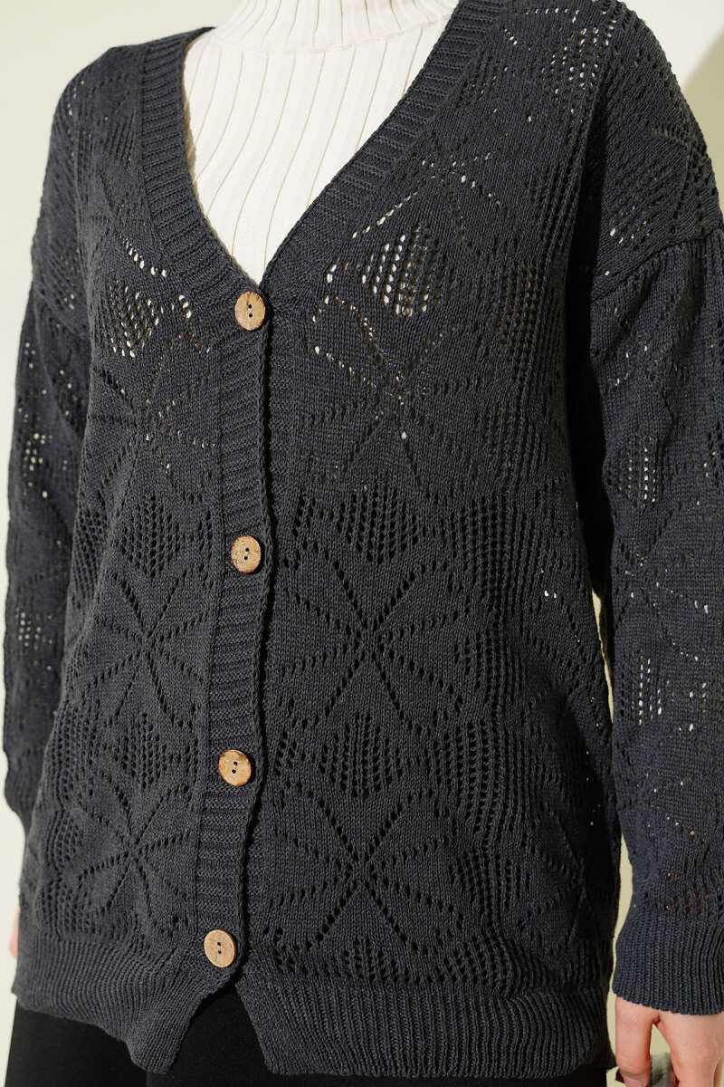 Pirinç Örgü Basic Triko Hırka Zümrüt