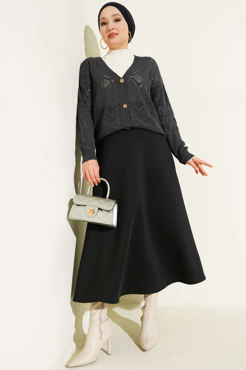 Gömlek Yaka Yandan Bağlamalı Etekli İkili Takım Siyah