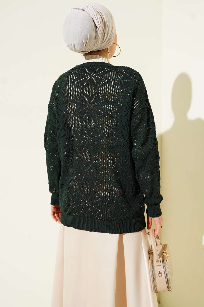 Üzüm Kol Bağcıklı Uzun Hırka Yağ Yeşili