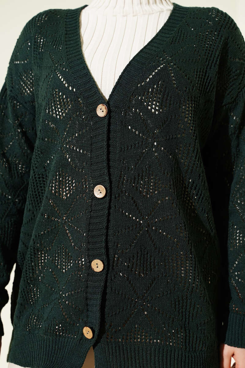 Çiçekli Baklava Desenli Triko Hırka Çağla Yeşili