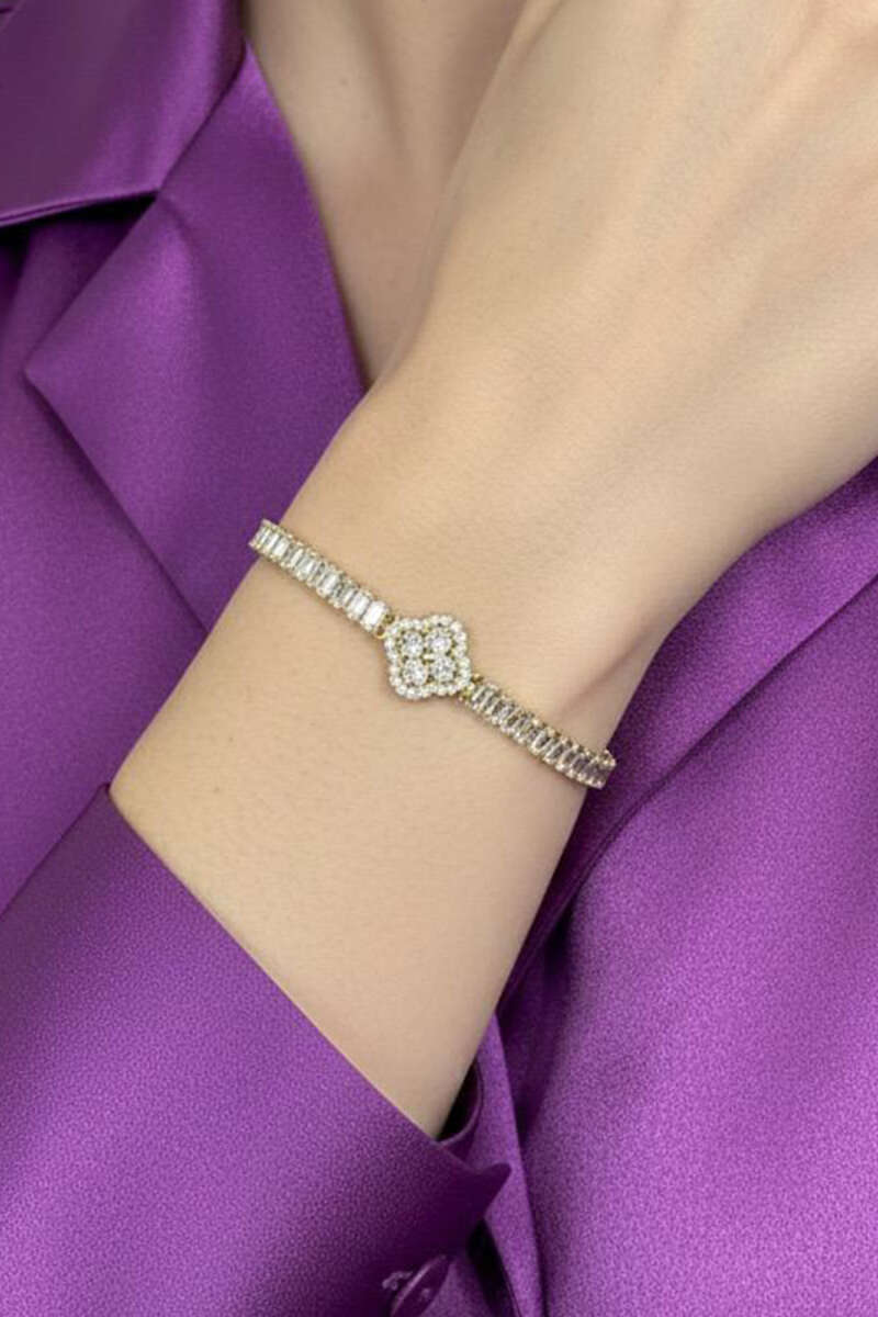 Çiçek Su Yolu Taşlı Bileklik Gold