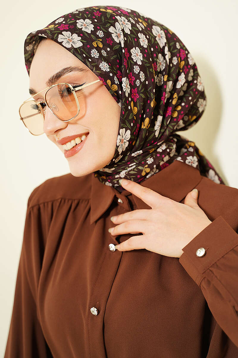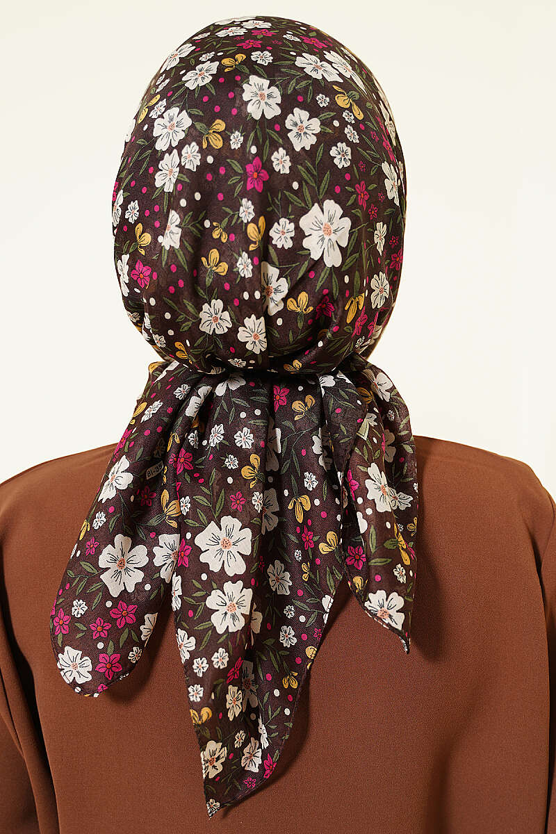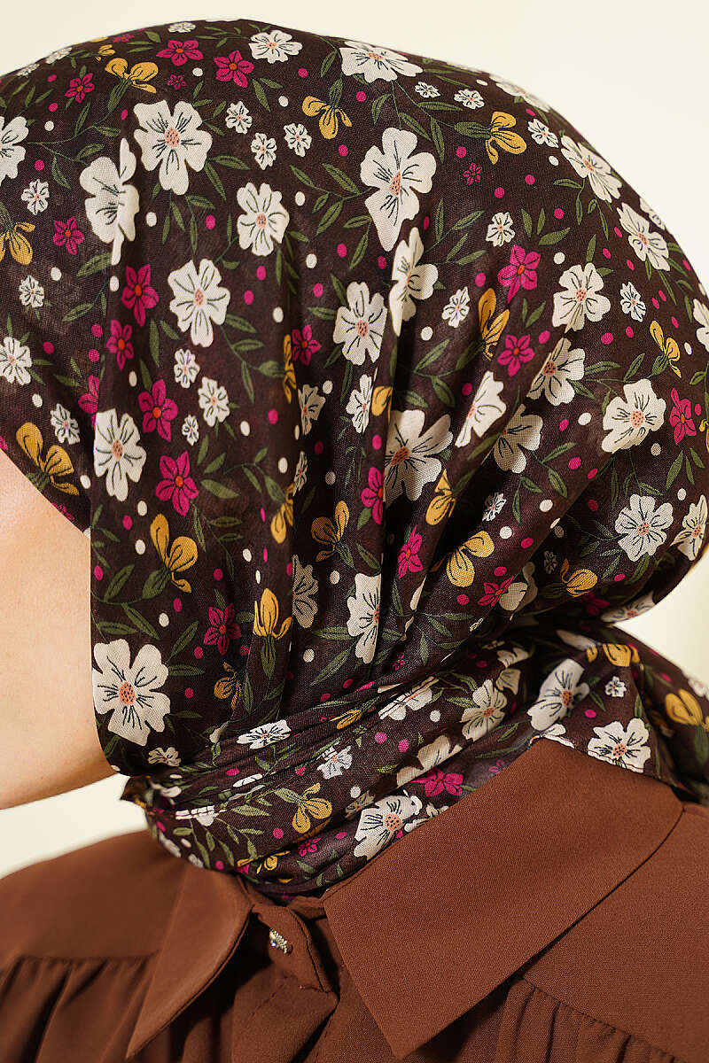 Çiçek Süslemeli Eşarp Kahve