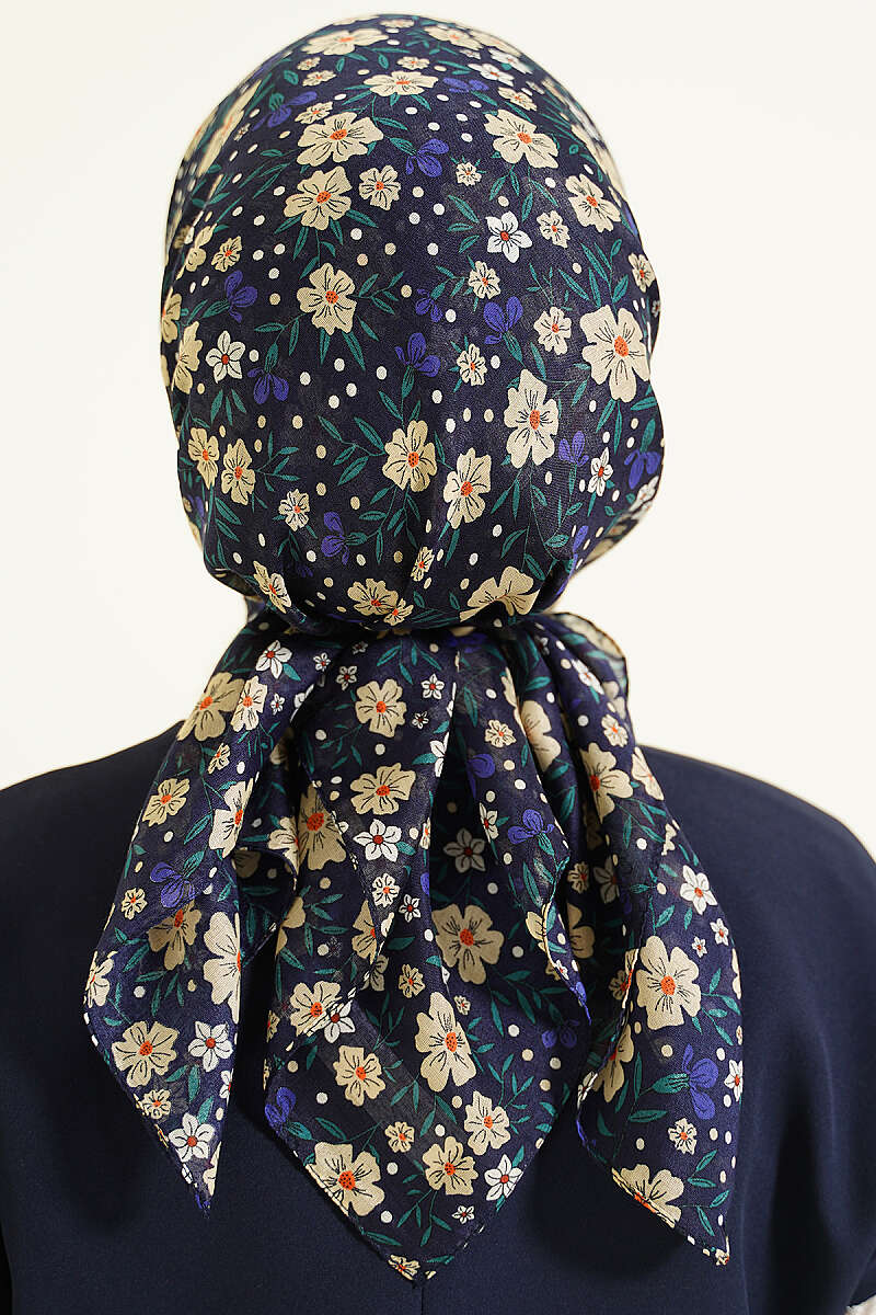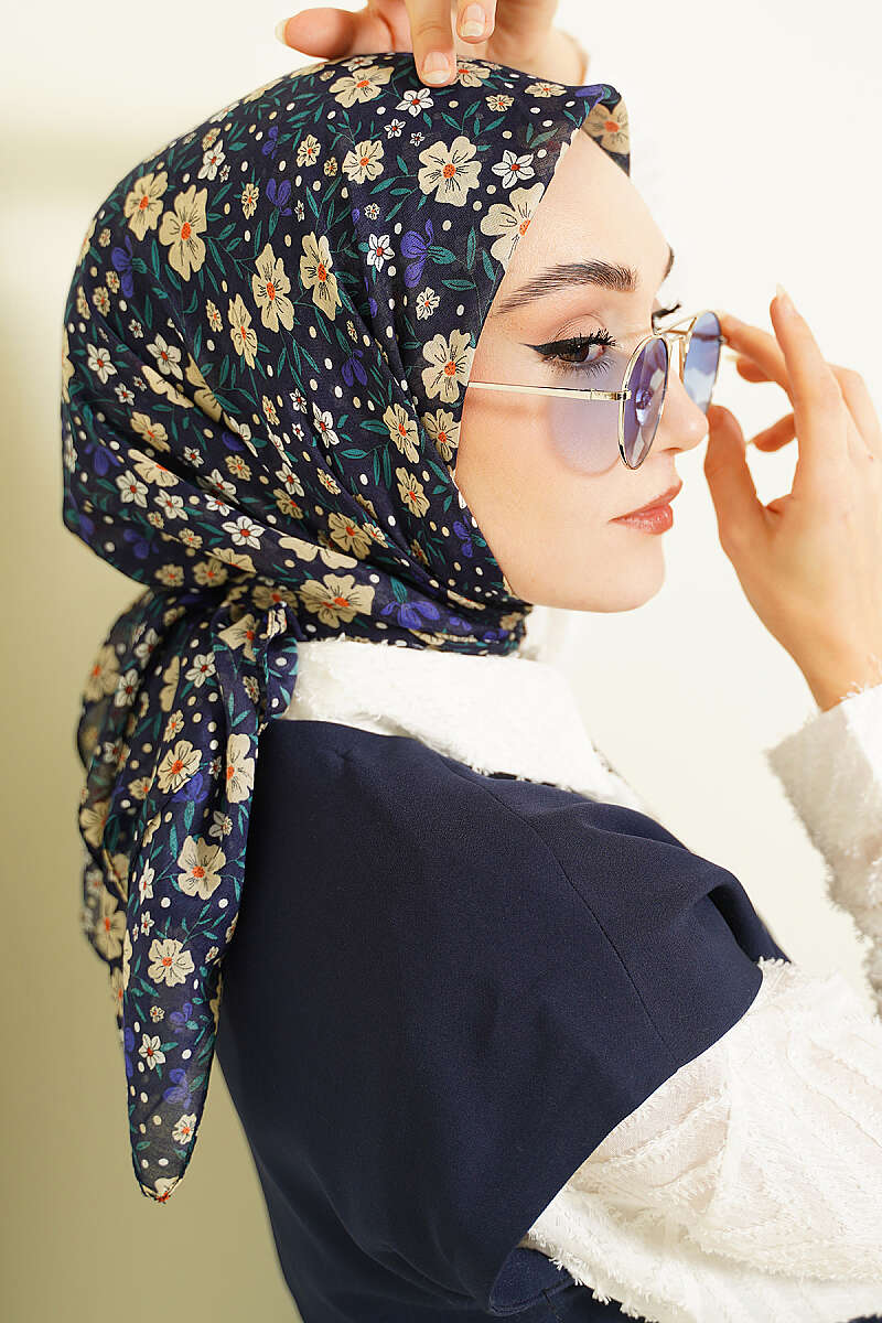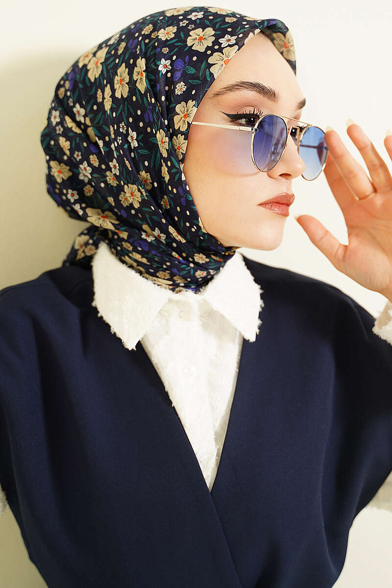 Çiçek Süslemeli Eşarp Siyah Yeşil