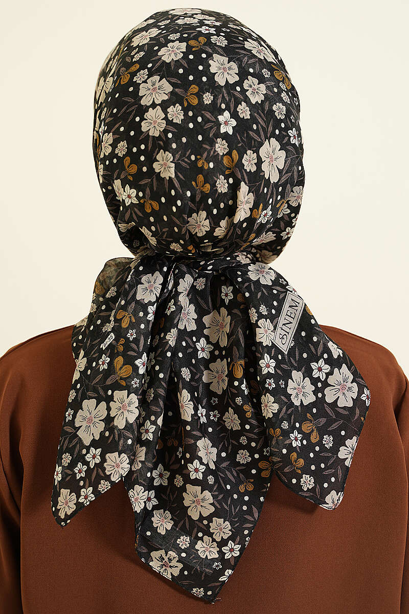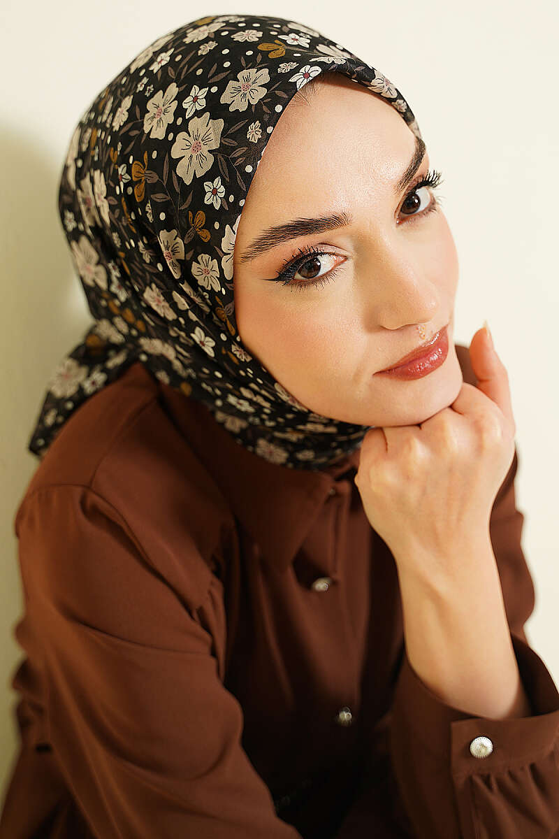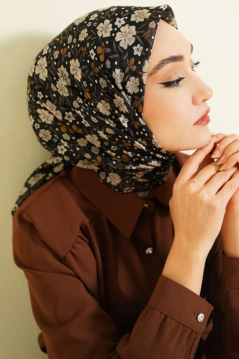 Lale Desen Bambu Kraş Eşarp Siyah Kahve